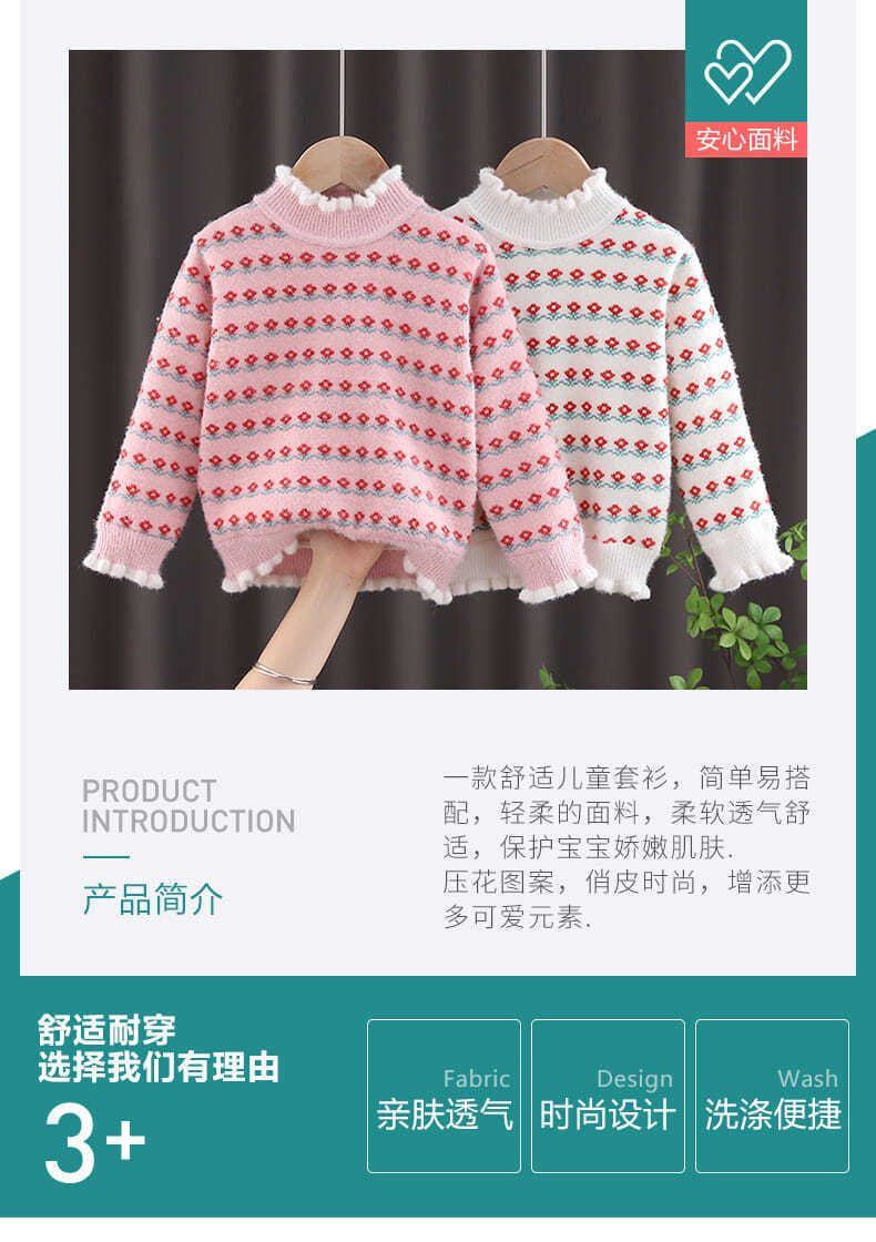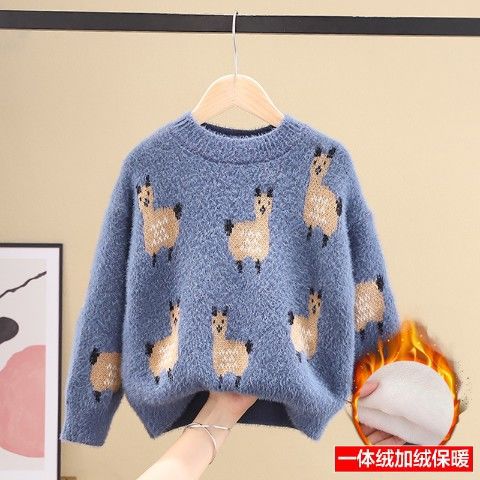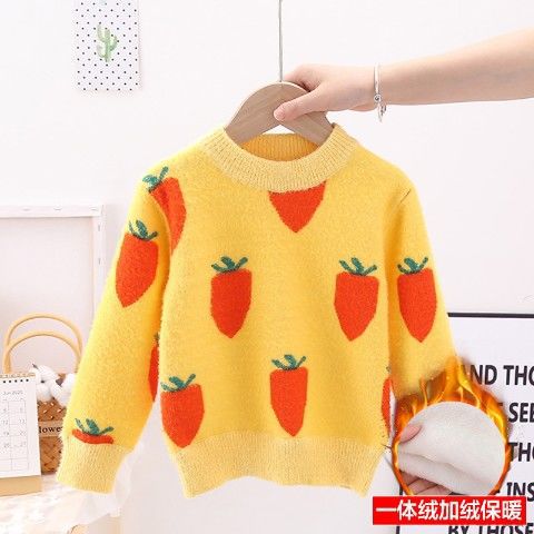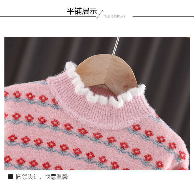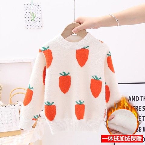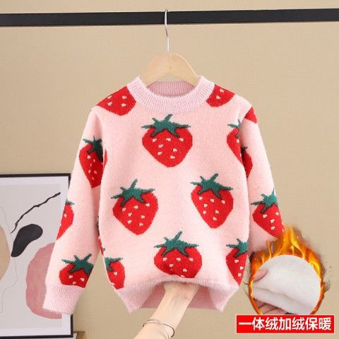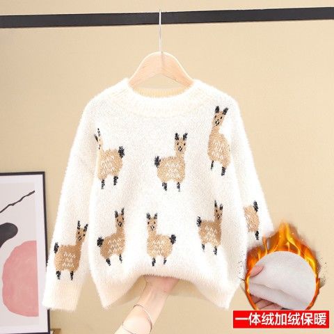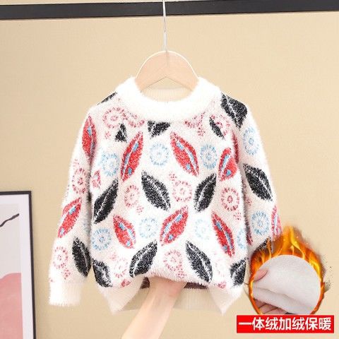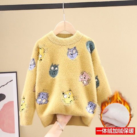 여아용 스웨터 풀오버, 벨벳 안감, 두꺼운 가을 겨울 신상품, 밍크 벨벳 스타일리시한 이너 니트웨어, 아동용 스웨터스토어 가기
