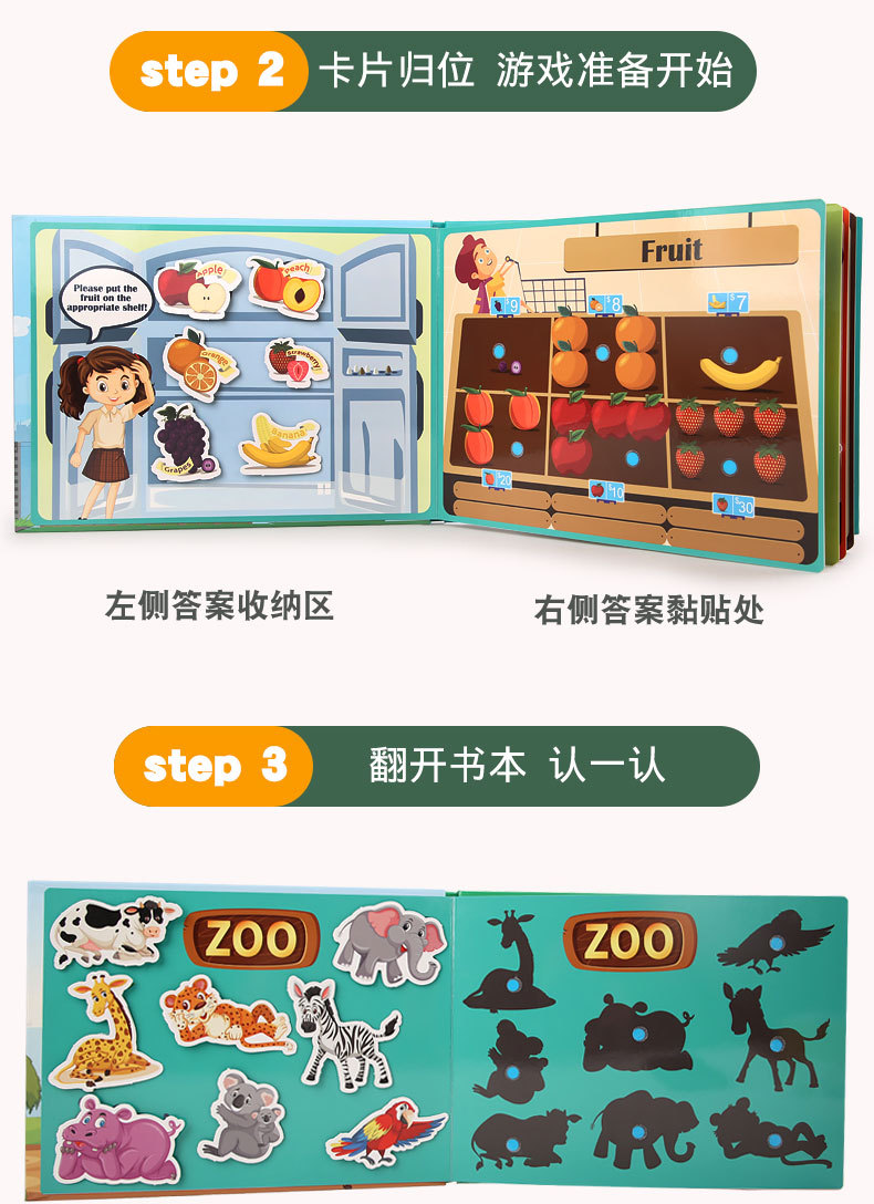 【新款2】升级款彩盒安静粘贴书综合款:尺寸:21.7*30.5*3.3cm 重量:0.4KG 装箱数:34套一箱 装箱尺寸:57*32*46cm