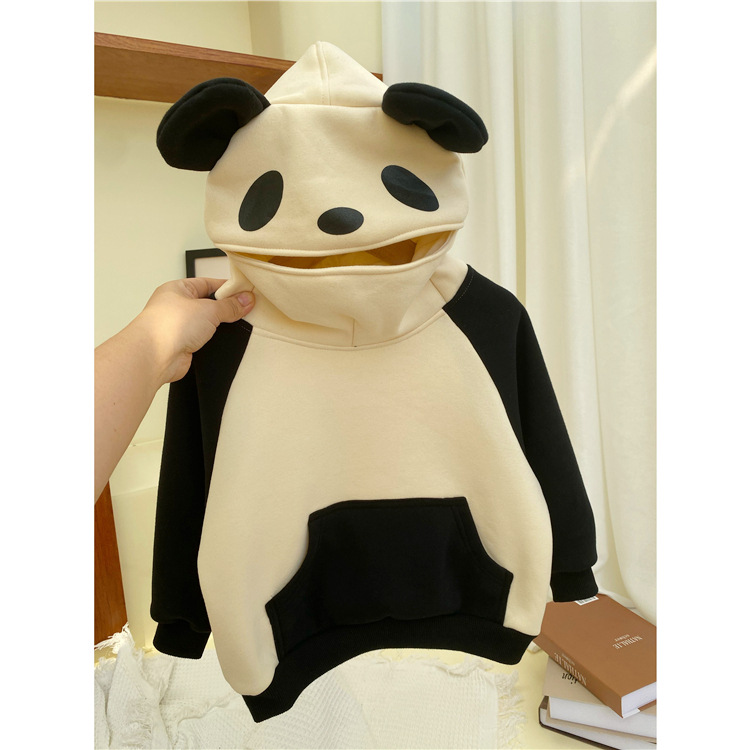 2021 가을과 겨울 어린이 원피스 벨벳 후드 스웨터 소년과 소녀 귀여운 팬더 따뜻한 패딩 풀오버 탑 트렌디스토어 가기