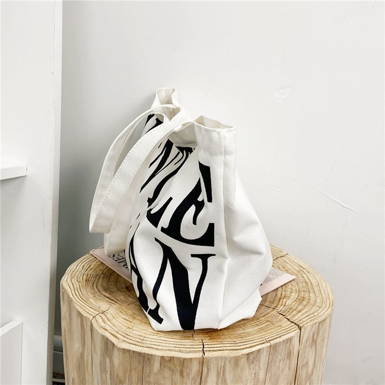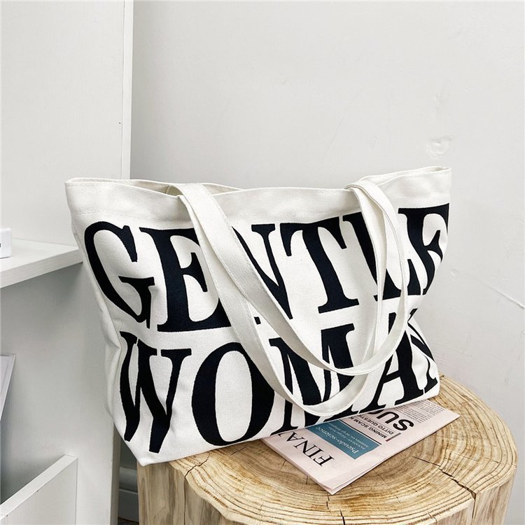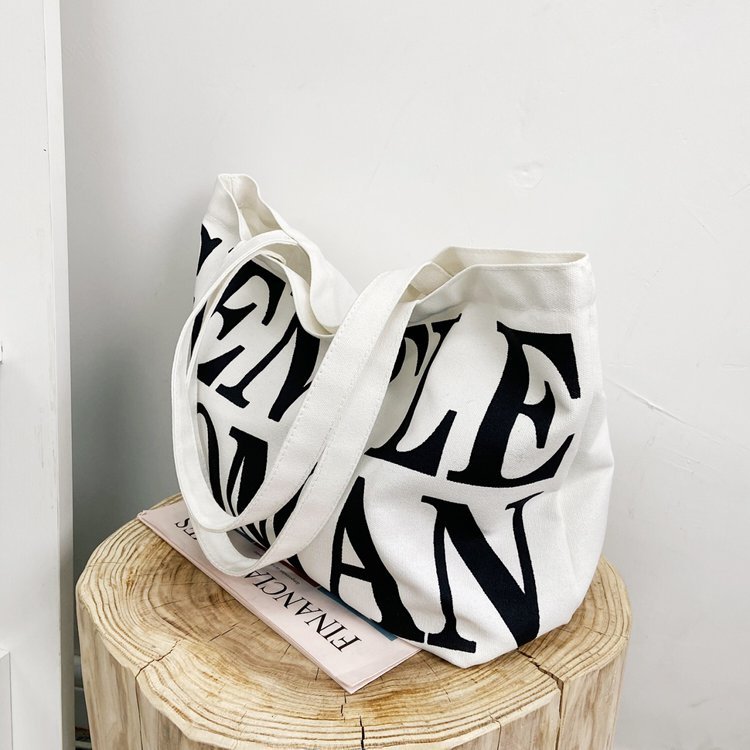 2021 인쇄 캔버스 가방 대용량 어깨 큰 가방 편지 캐주얼 토트 패션 휴대용 캔버스 가방 도매스토어 가기