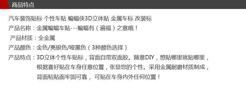 汽车3D外饰车贴 金属个性蝙蝠车标 改装车身贴 尾标 机盖标 侧标