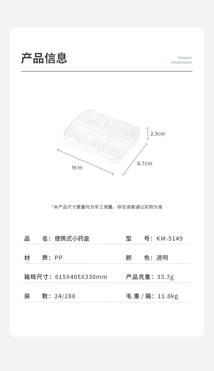 6 칸 여행 밀폐 보관 소형 알약 상자 휴대용 칸 1 주 여행 기내 반입 알약 미니 알약 상자