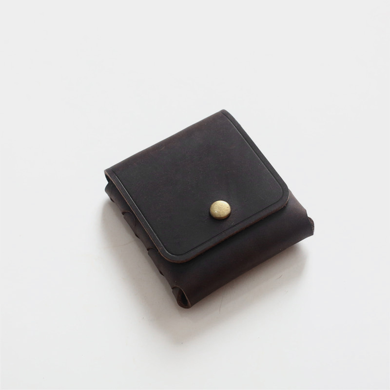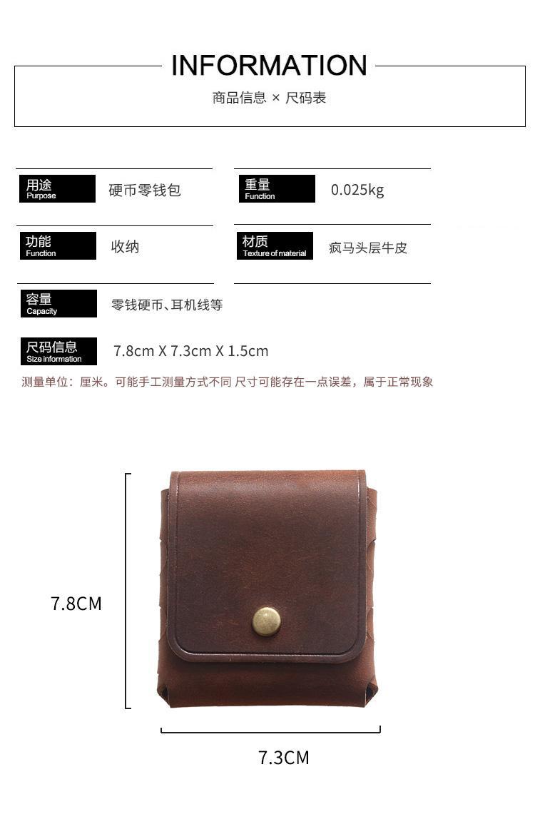 남자와 여자의 미니 동전 지갑 미친 말 탑 레이어 Cowhide 버클 동전 가방 정품 가죽 헤드셋 보호 케이스 짧은 작은 지갑스토어 가기