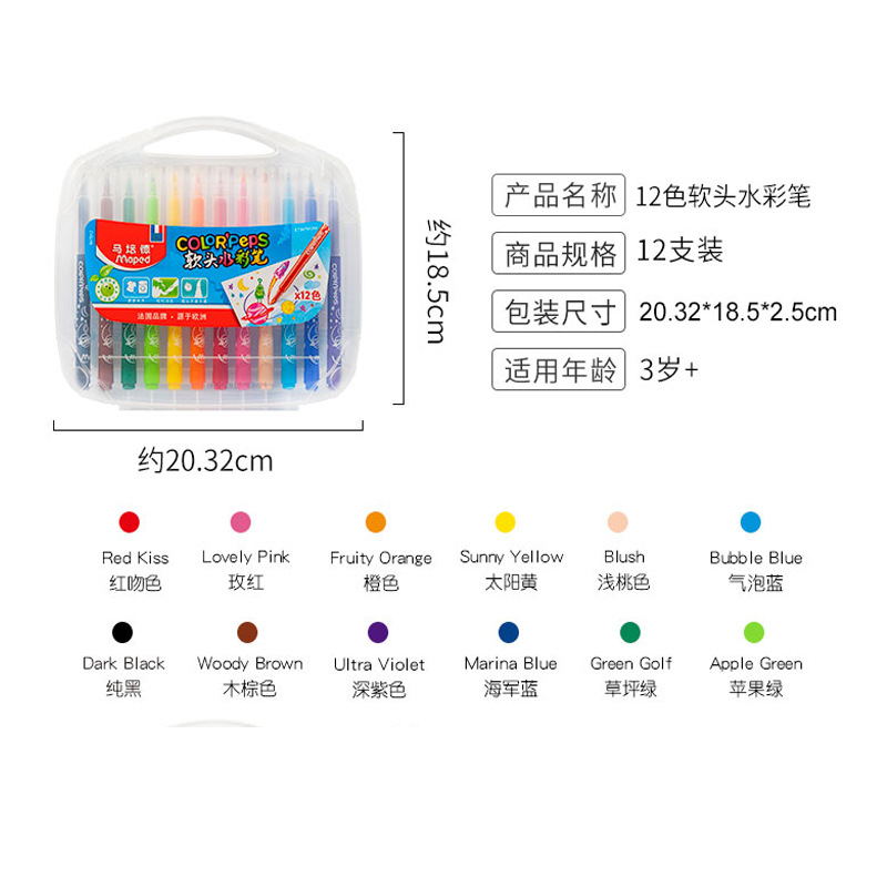 마 페이드 소프트 헤드 수채화 펜 36 색 24 색 12 색 초등학교 학생 빨 컬러 펜 세트 어린이 유치원