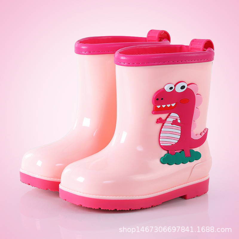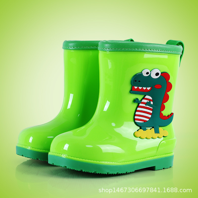 남성과 여성을위한 코튼 따뜻한 만화 공룡 워터 슈즈와 미드 튜브 방수 어린이 레인 부츠 미끄럼 방지 4 계절 물 레인 부츠