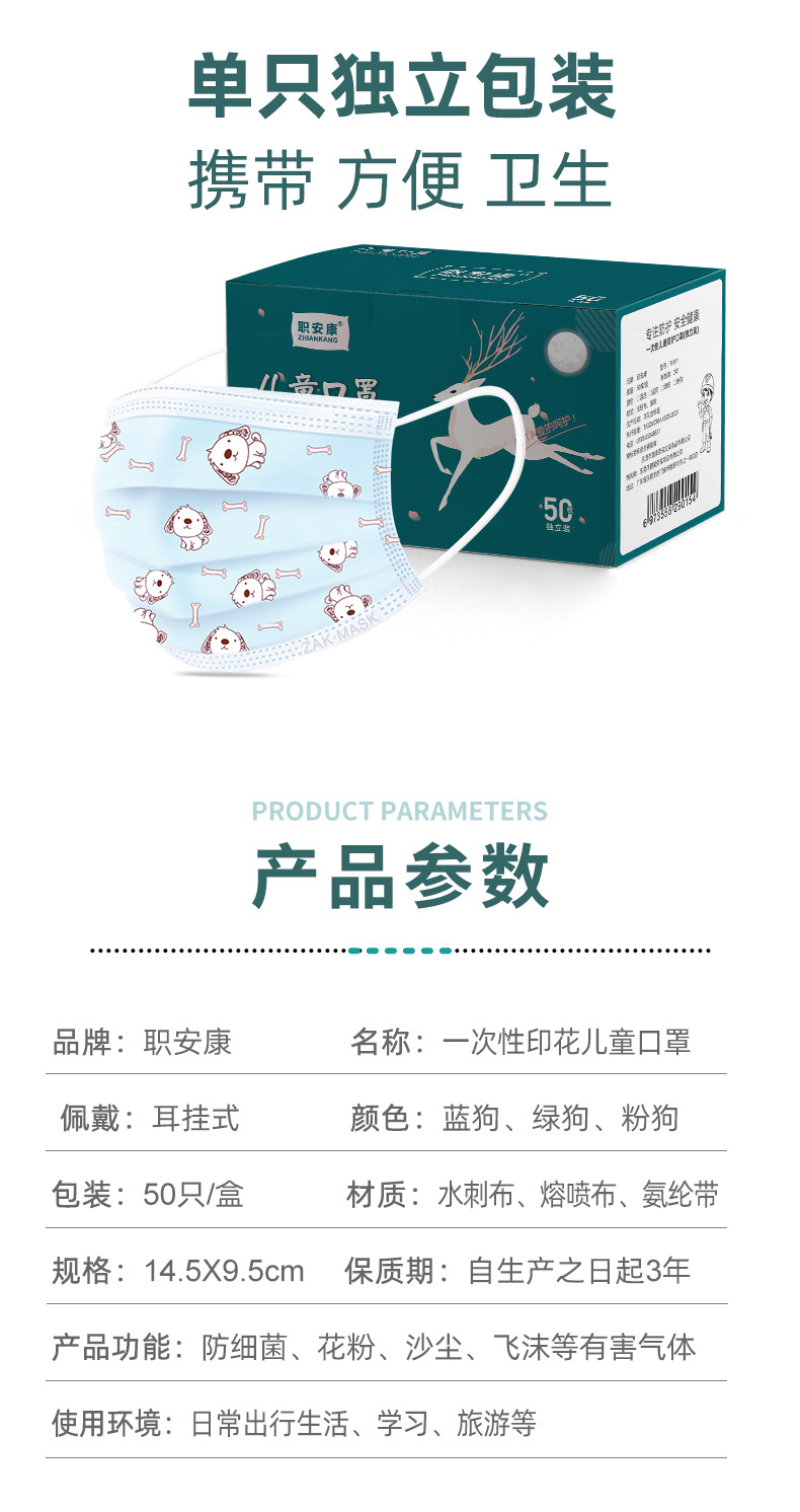 어린이용 마스크 6-12세 개별 포장 도매 일회용 3중 구조 개별 포장 학생용 여름 통기성
