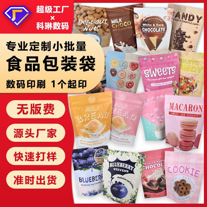 采用惠普Indigo 20000 数码无版印刷、无需制版费用、支持小批量多图案定制订单,量大价格从优,交货速度快,通常4-10天交货;烦请告知你需要定制的袋型,尺寸以及需要定制的数量,我们给你提供最准确的报价,详情咨询客服了解!