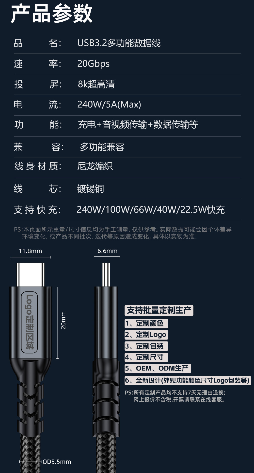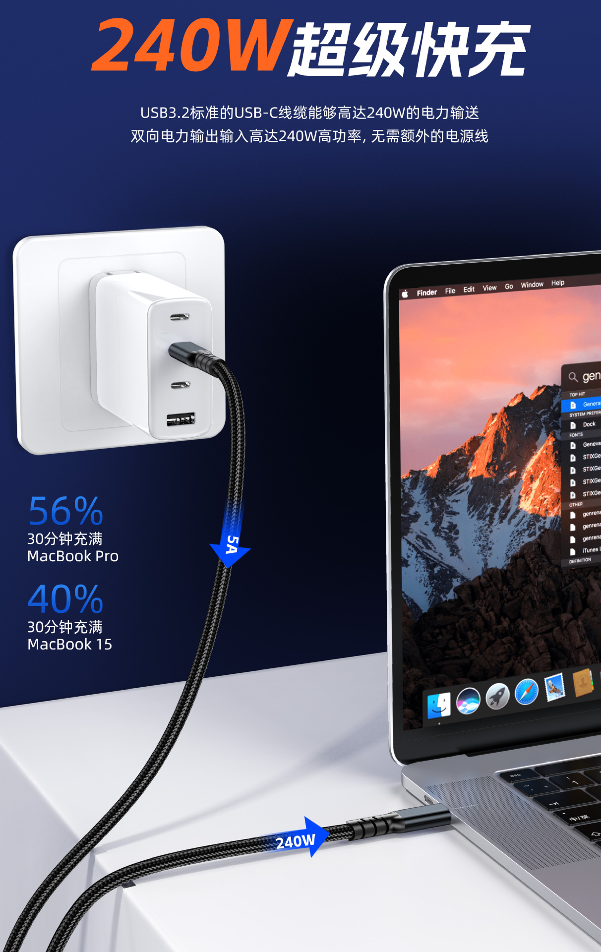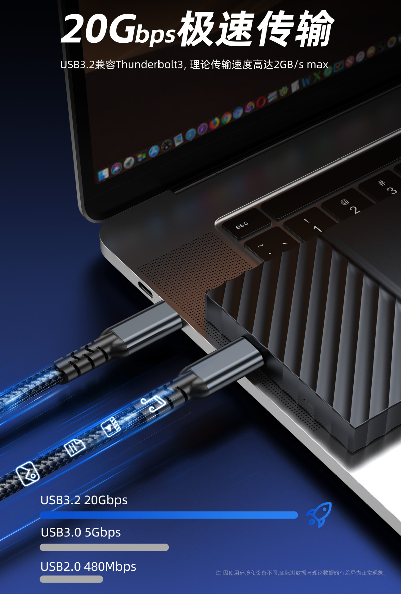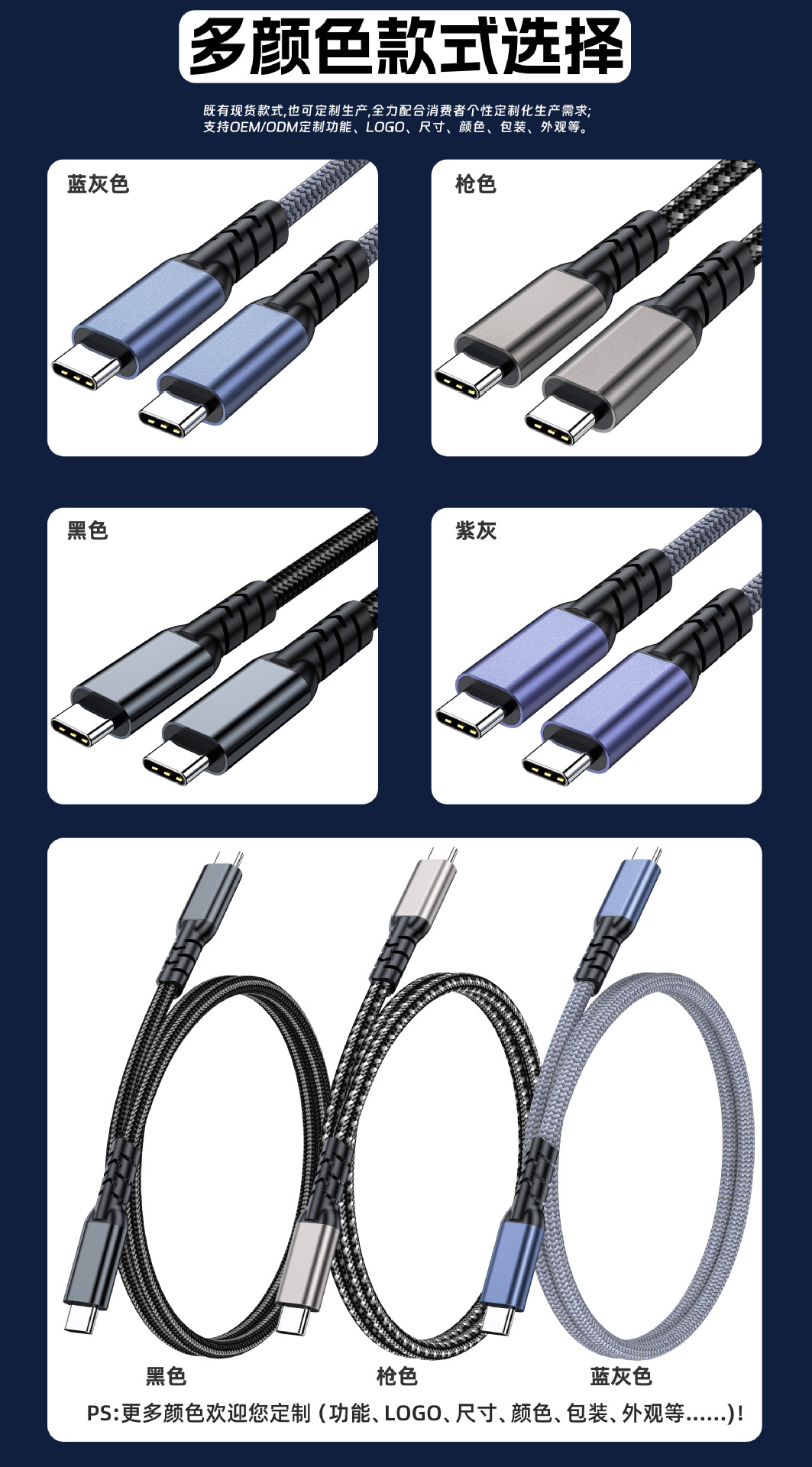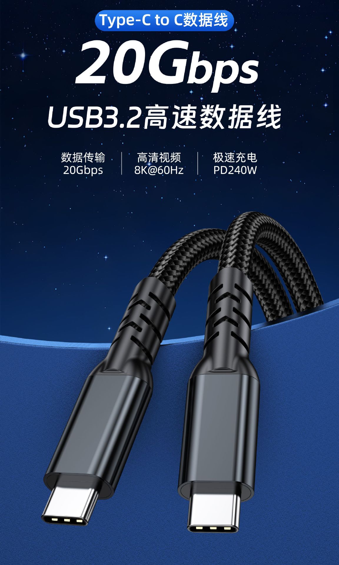 타입-C 데이터 케이블 20Gbps 듀얼 USB3.2 C타입-C타입 데이터 케이블 8K 스크린 프로젝션 휴대용 스크린 케이블 240W 고속 충전