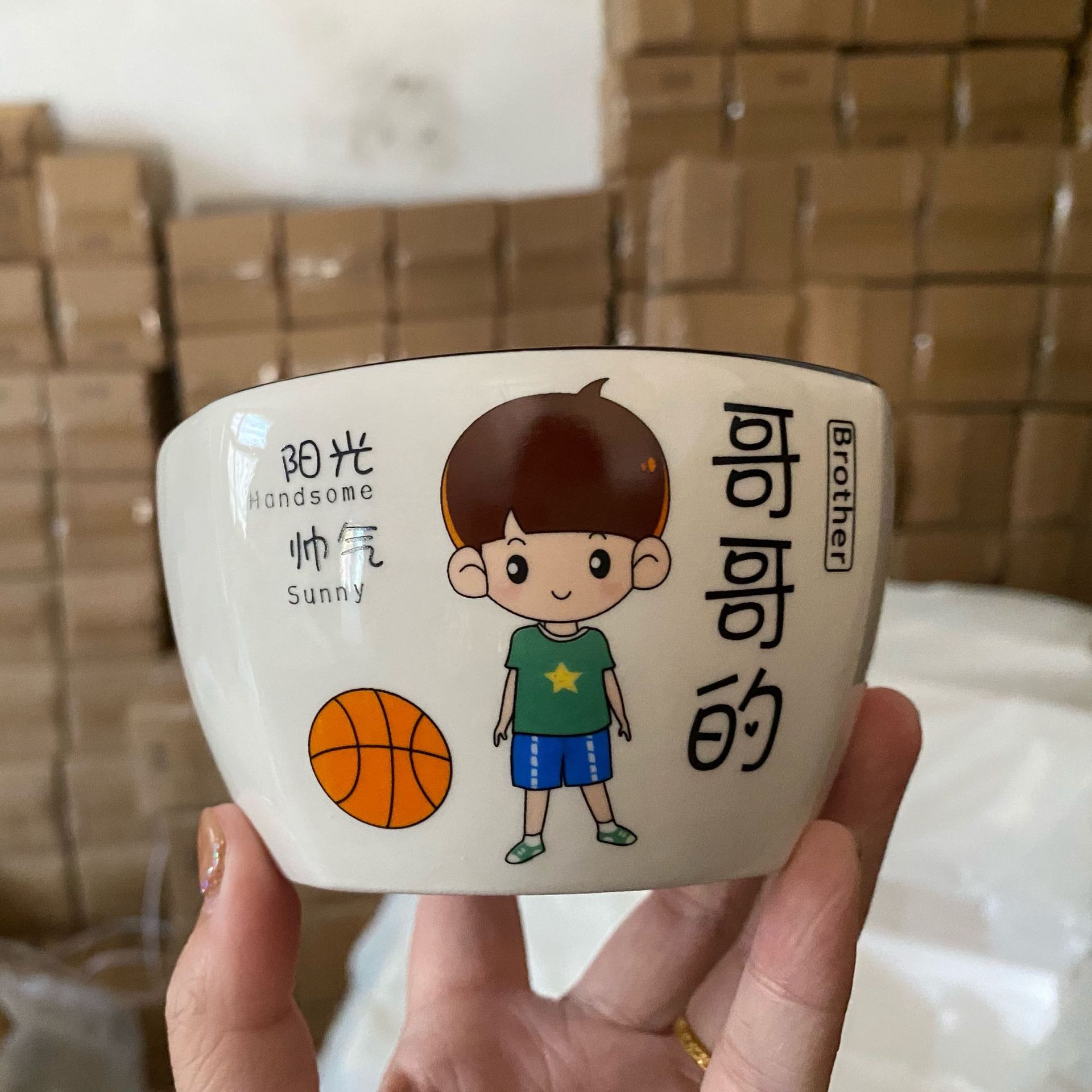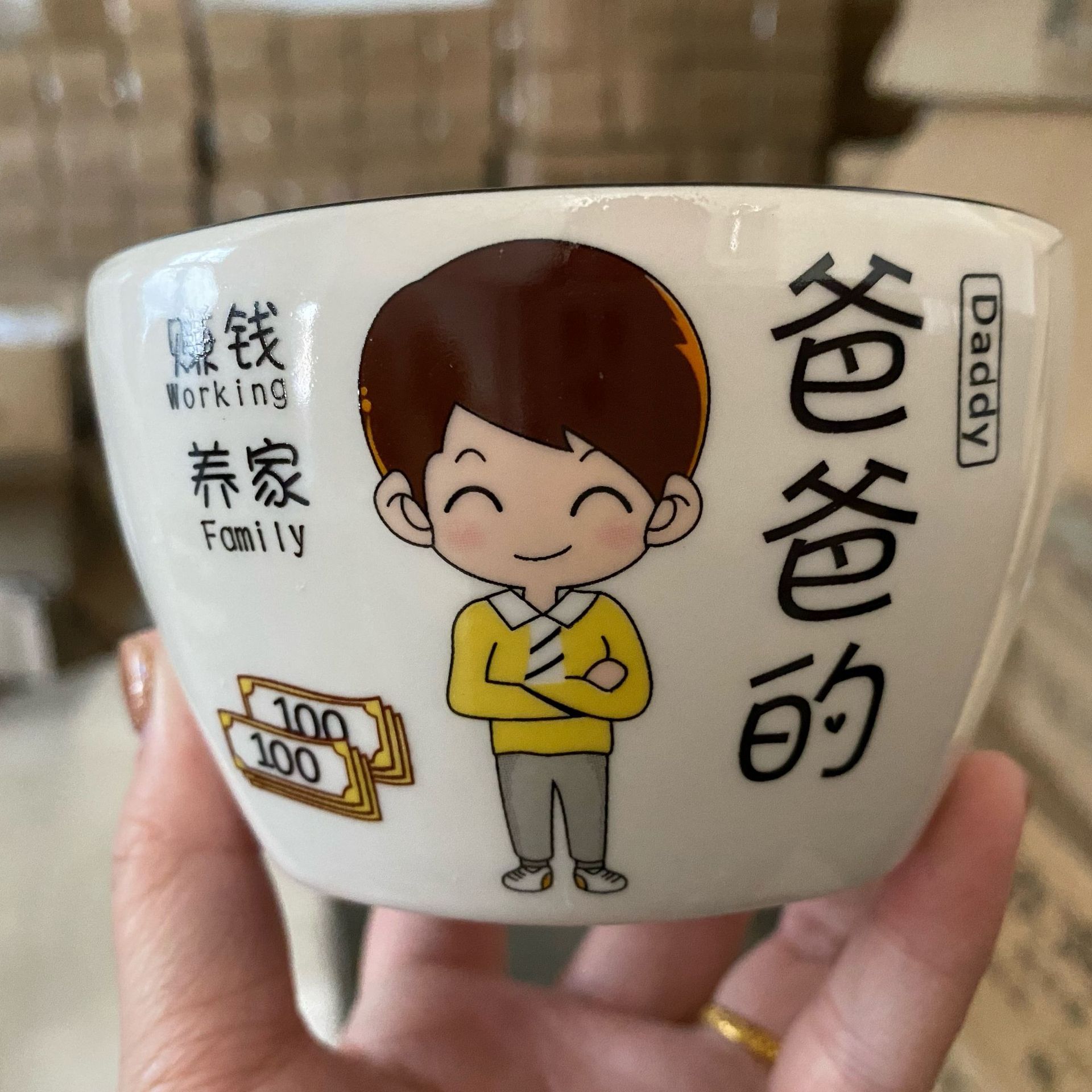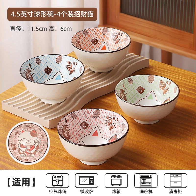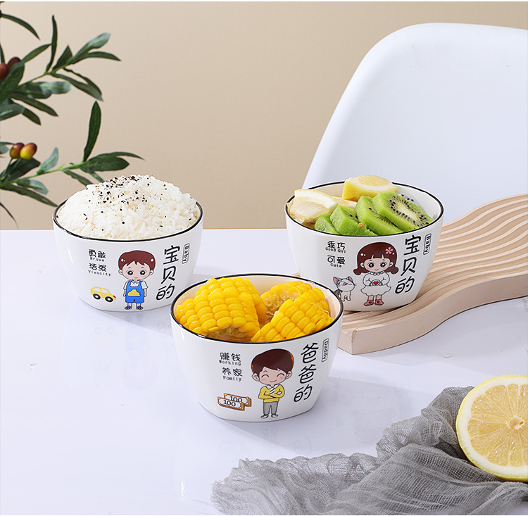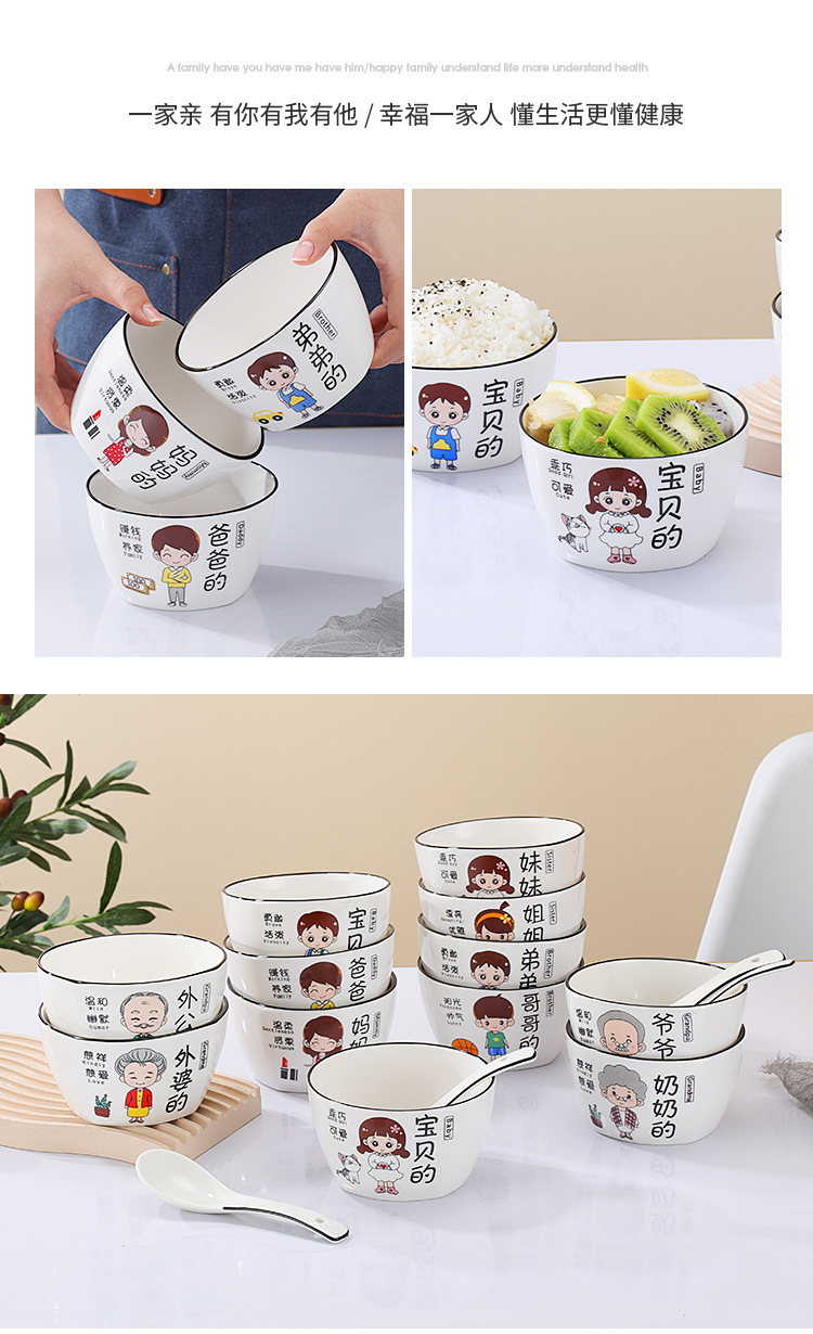 가정용 그릇 부모-어린이 그릇 가족 4 개의 쌀 그릇 카토 그릇 세라믹 밥 그릇 인터넷 인기있는 새 스타일 그릇 및 숟가락 식기 조합