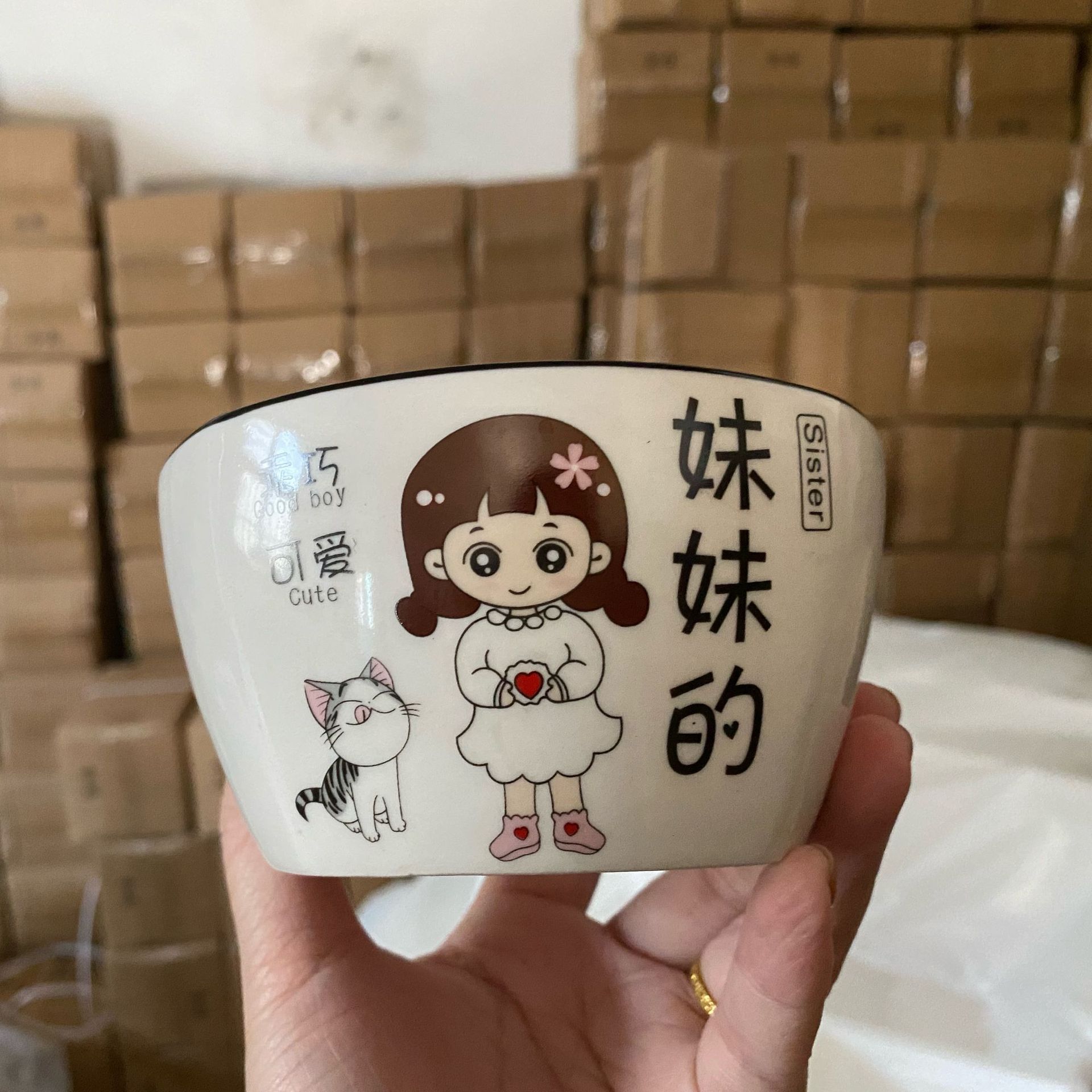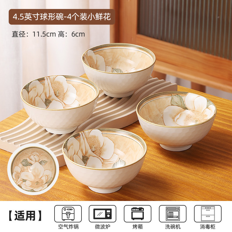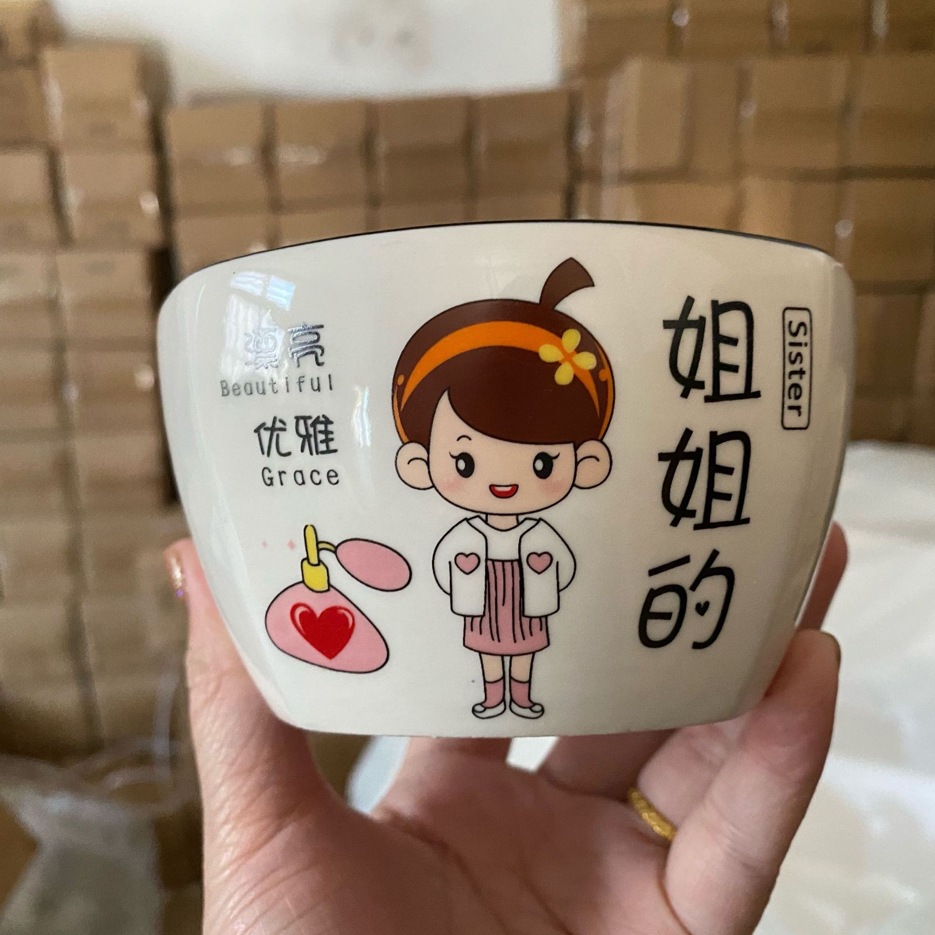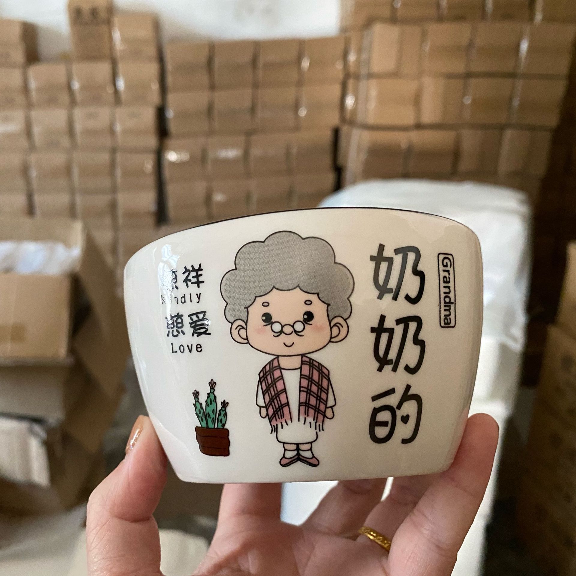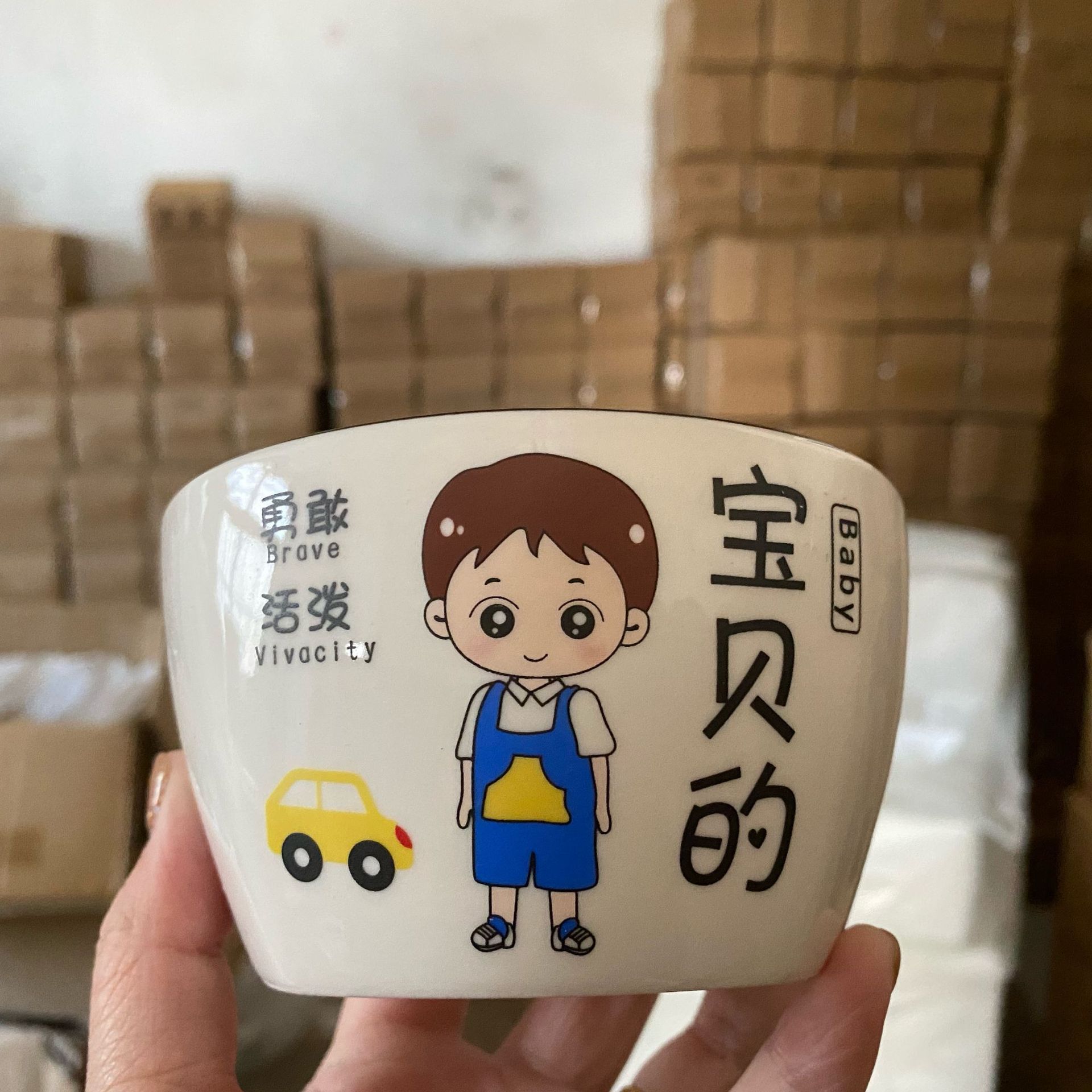가정용 그릇 부모-어린이 그릇 가족 4 개의 쌀 그릇 카토 그릇 세라믹 밥 그릇 인터넷 인기있는 새 스타일 그릇 및 숟가락 식기 조합