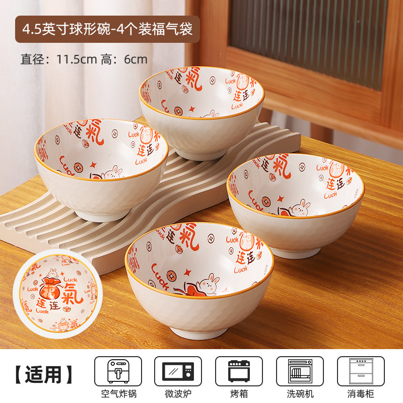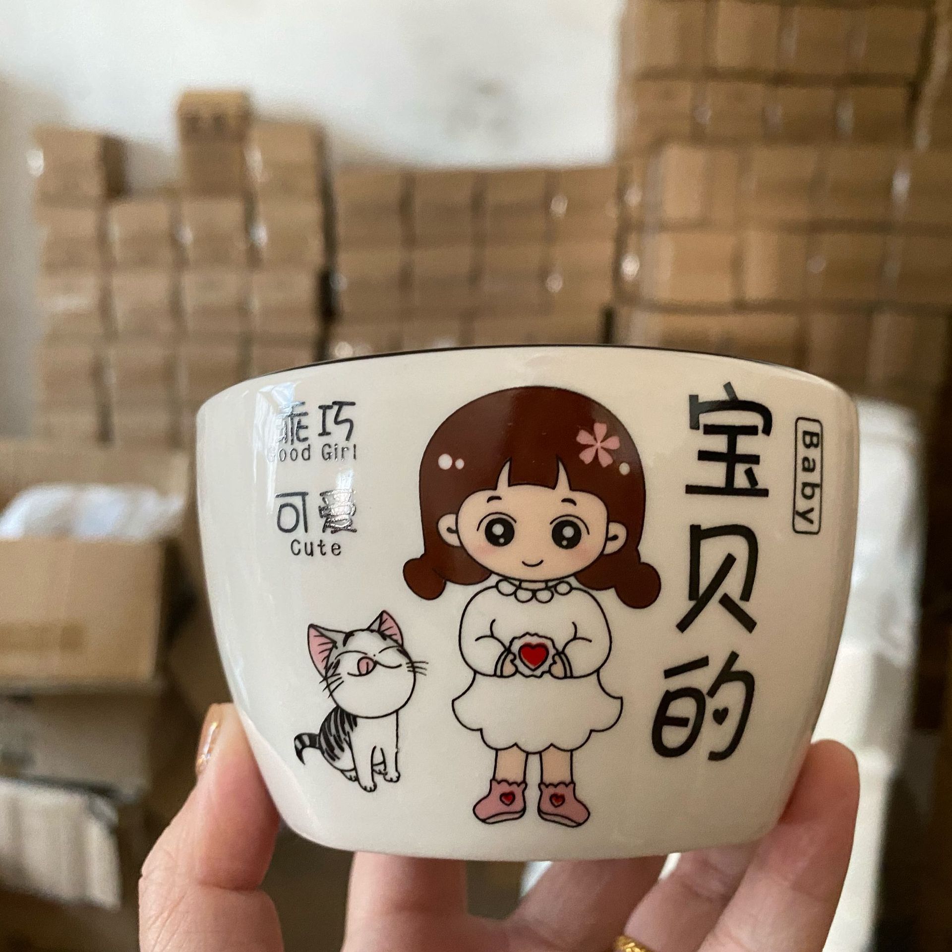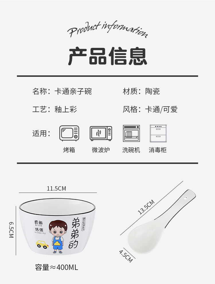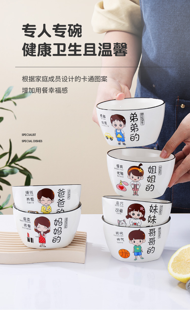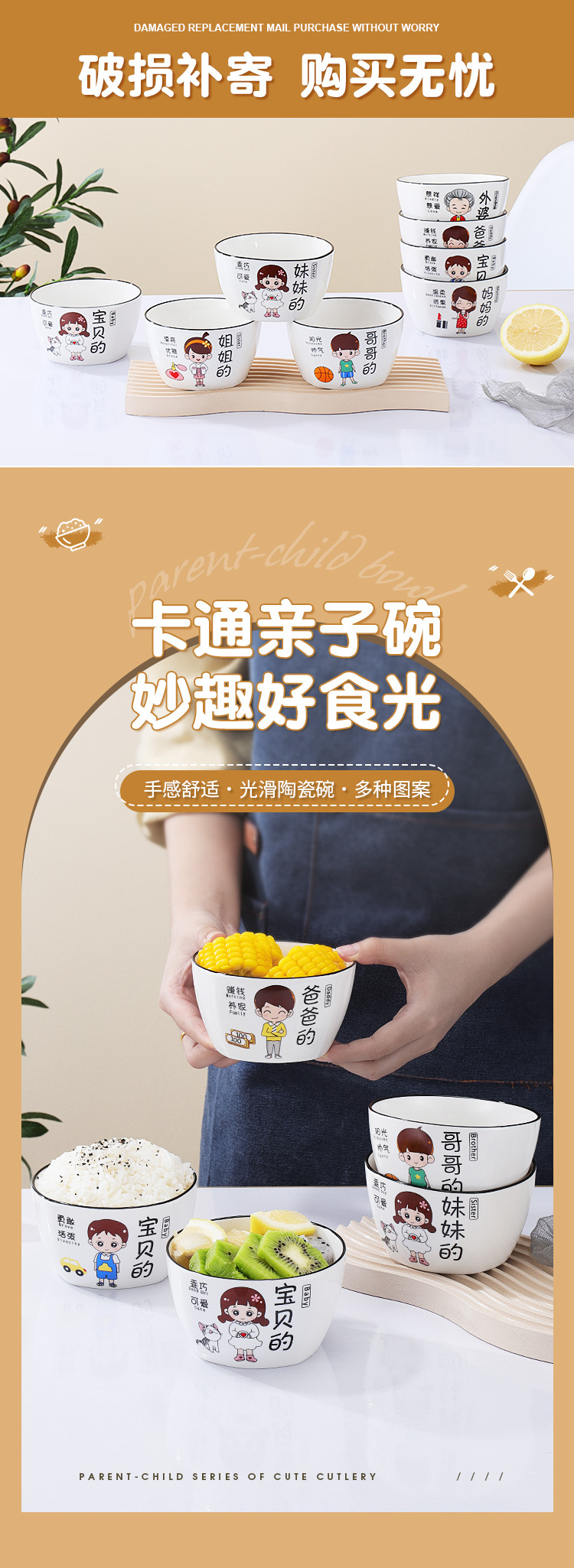 가정용 그릇 부모-어린이 그릇 가족 4 개의 쌀 그릇 카토 그릇 세라믹 밥 그릇 인터넷 인기있는 새 스타일 그릇 및 숟가락 식기 조합스토어 가기
