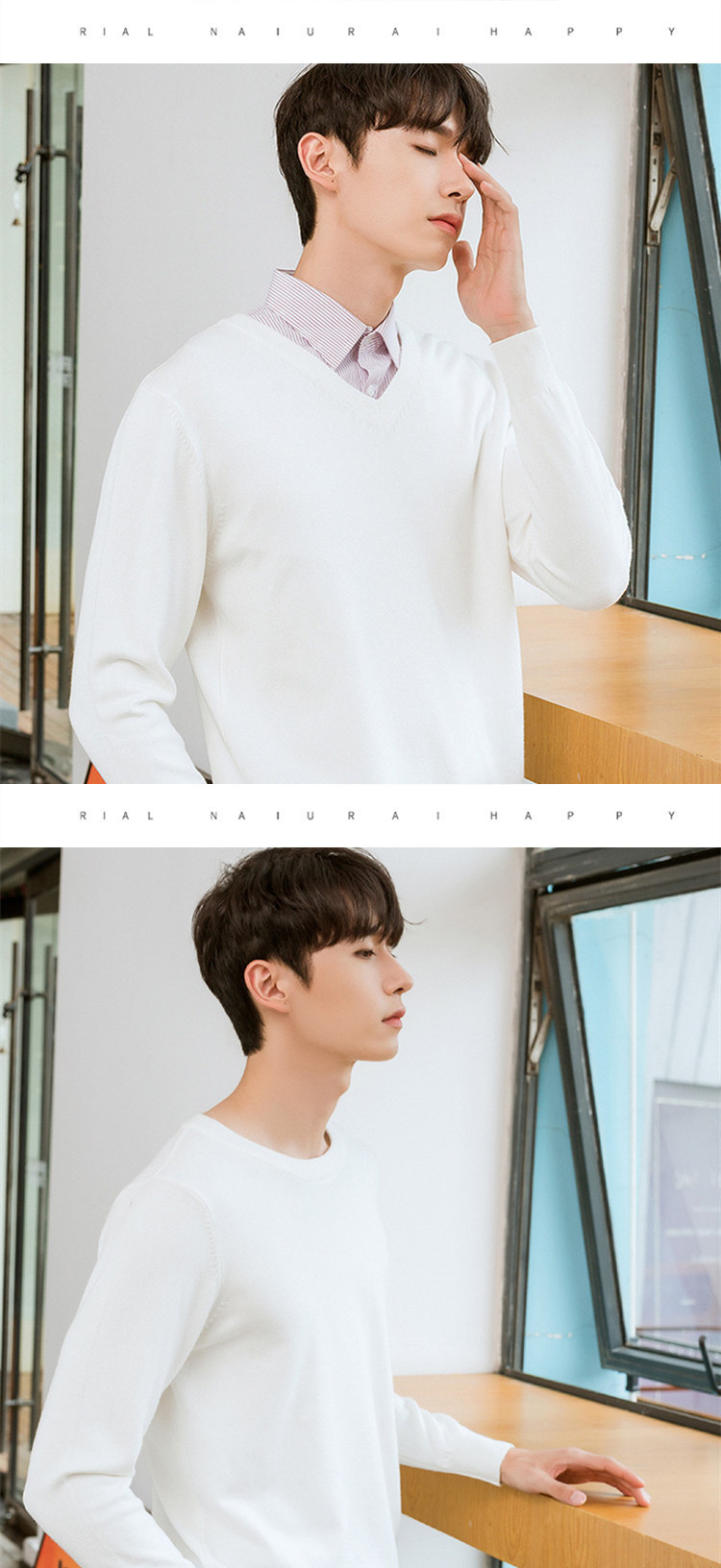 24 번째 가을, 겨울 니트 스웨터 남성용 라운드 넥 스웨터 두꺼운 느슨한 대형 바닥 셔츠 남성용 v 넥 풀오버 긴 소매