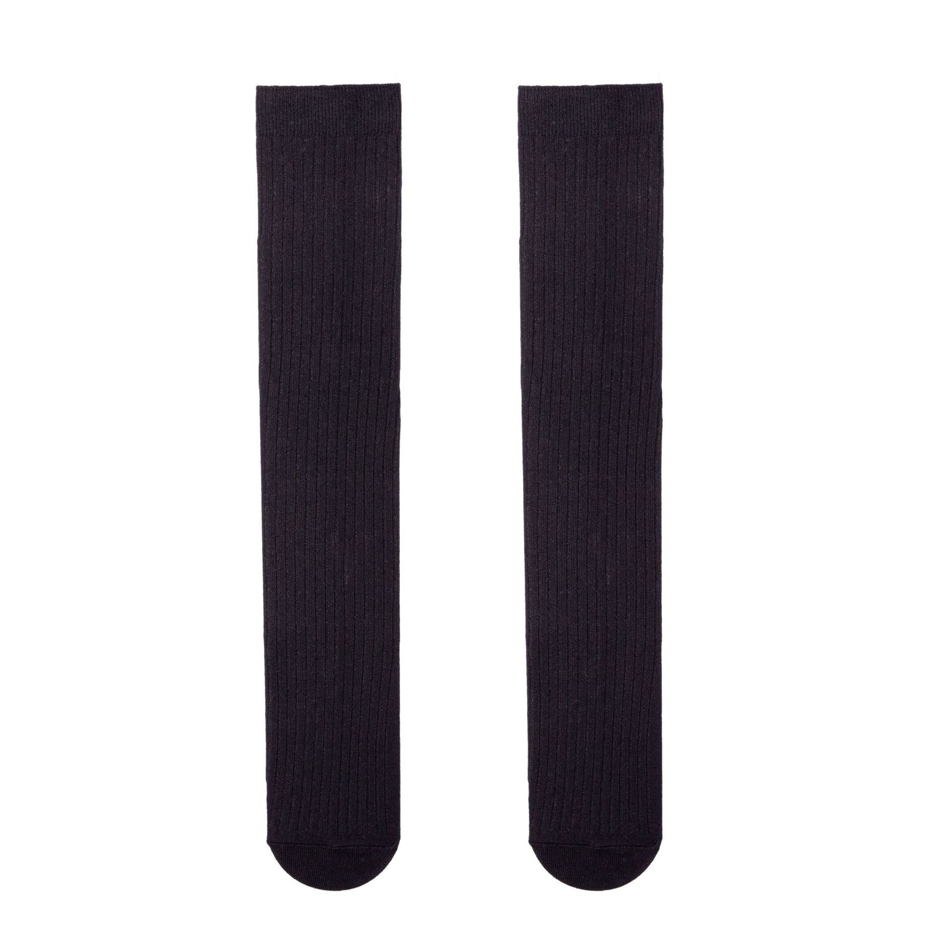 긴 튜브 무릎 길이 더블 바늘 검정과 흰색면 긴 양말 모든 일치 조수 양말 도매 어린이를위한 한국 단색 송아지 양말