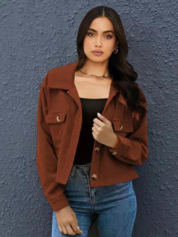 2021 가을과 겨울 새로운 아마존 유럽과 미국 패션 코듀로이 셔츠 코트 여성 최고 신선하고 달콤한