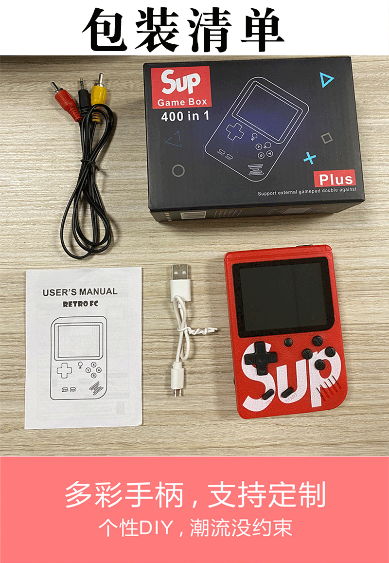 SUP 휴대용 레트로 게임기, 옛날 추억의 슈퍼 마리오 400가지 게임이 하나로! 싱글 플레이어용 클래식 게임, 해외 직구 가능