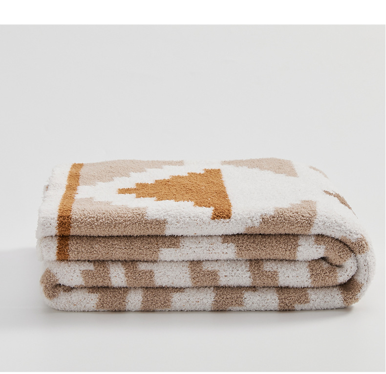 Ruijing 섬유 담요 도매 기하학적 하프 벨벳 니트 담요 부드러운 원피스 소파 담요