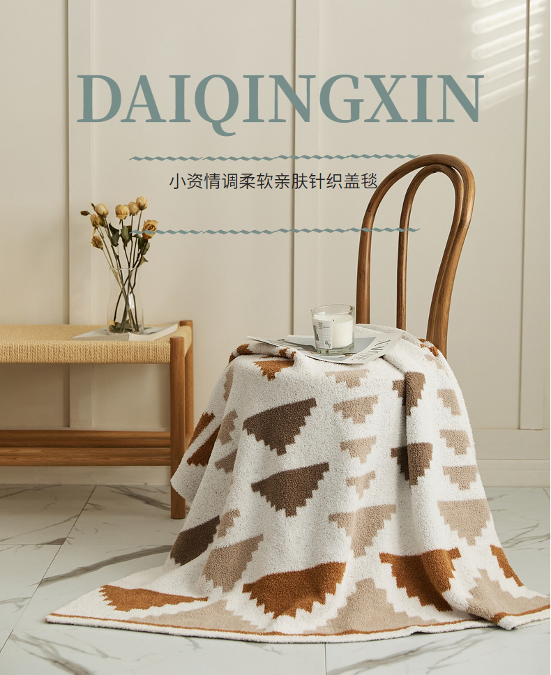 Ruijing 섬유 담요 도매 기하학적 하프 벨벳 니트 담요 부드러운 원피스 소파 담요스토어 가기