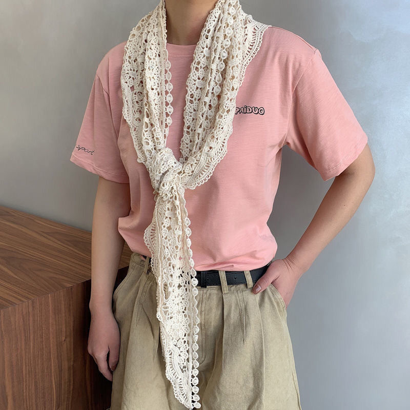 봄과 여름 2021 새로운 스타일 목도리 한국 스타일 우아한 패션 할로우 라운드 꽃 삼각형 외부 목도리 태양 보호 목 보호