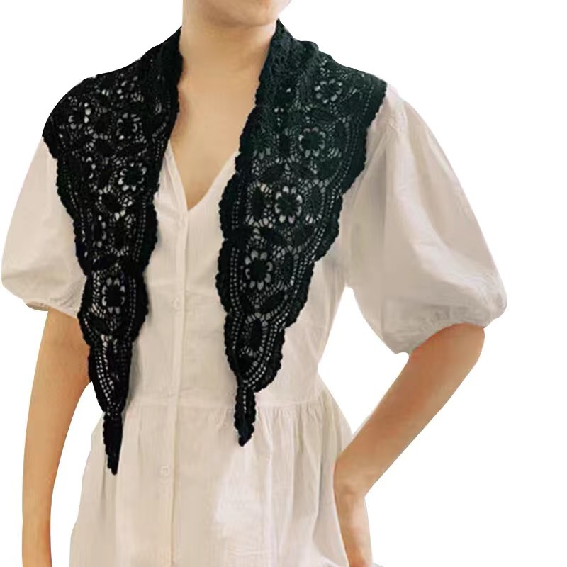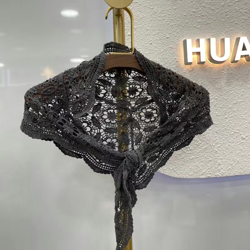 새로운 한국식 얇은 꽃 레이스 할로우 올매치 쇼트 썬 스크린 작은 와이프 스카프
