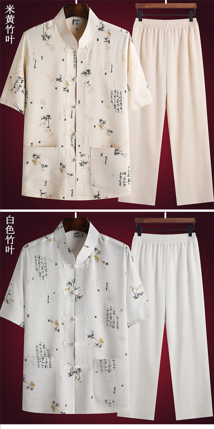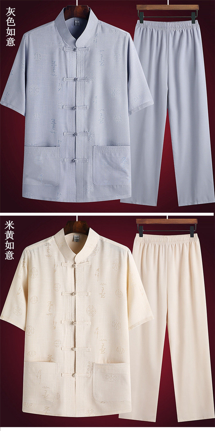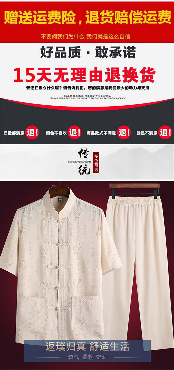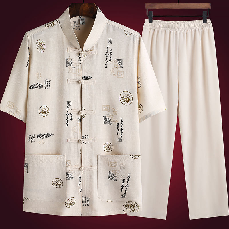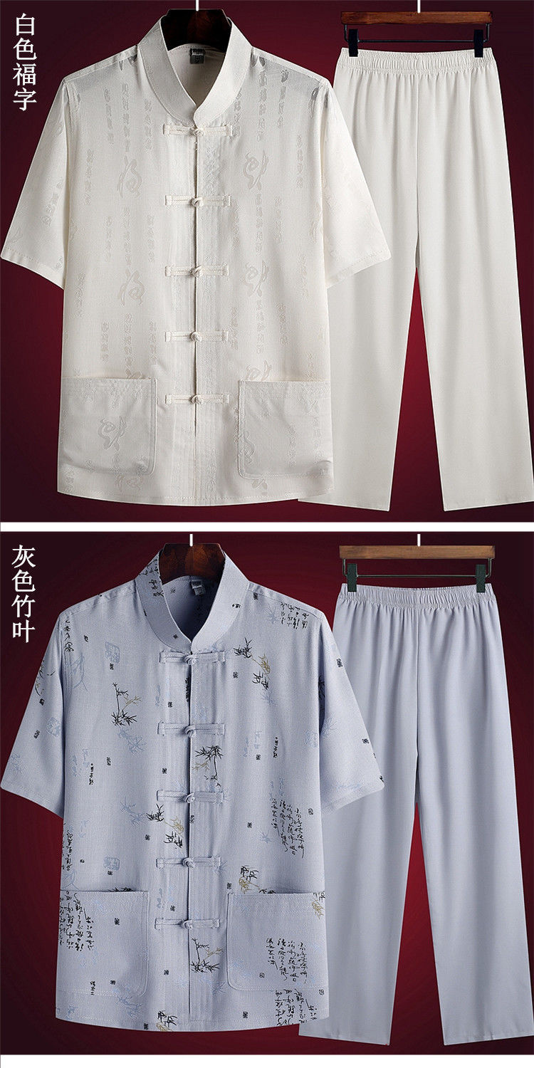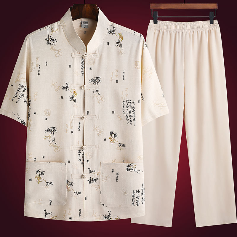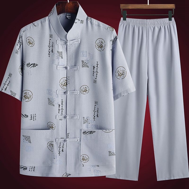 Tang 세트 남자의 반팔 캐주얼 세트 아빠 여름 옷 중년 및 노인 사람들의 Hanfu 중국 스타일 남자의 여름 할아버지 옷스토어 가기