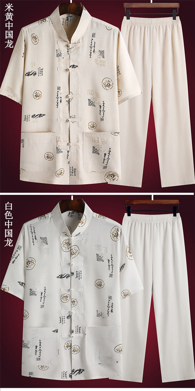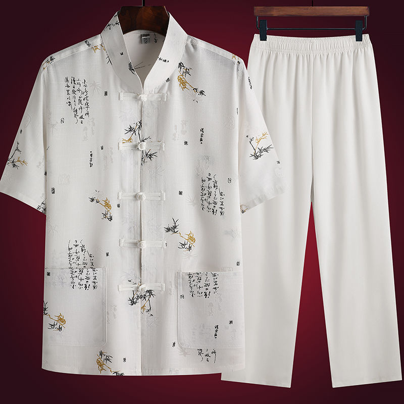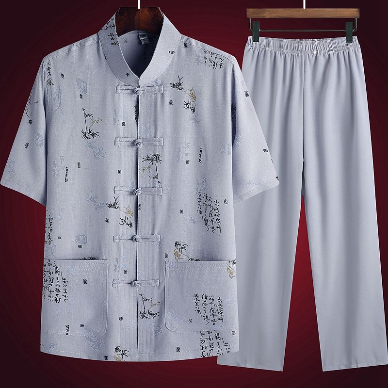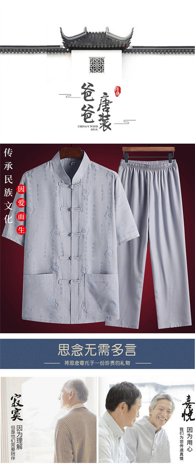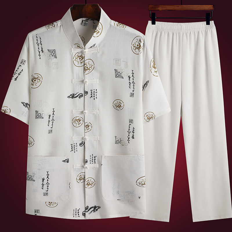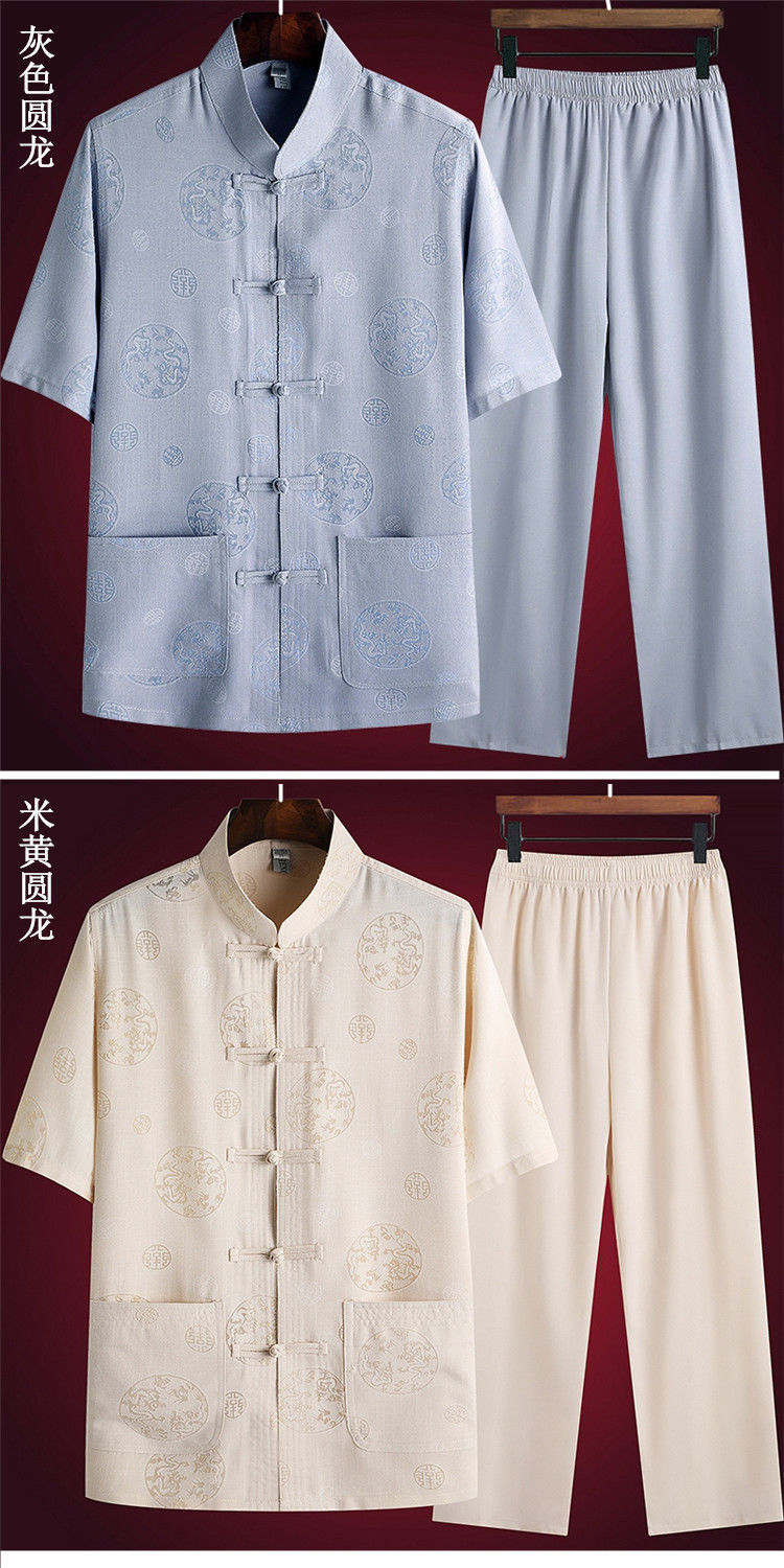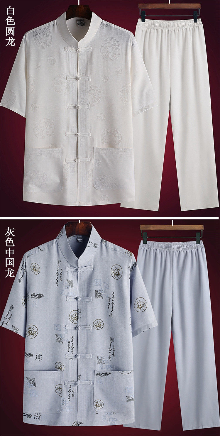 Tang 세트 남자의 반팔 캐주얼 세트 아빠 여름 옷 중년 및 노인 사람들의 Hanfu 중국 스타일 남자의 여름 할아버지 옷스토어 가기
