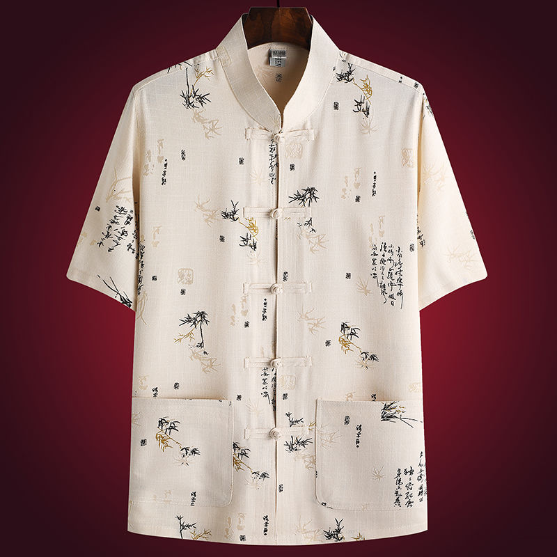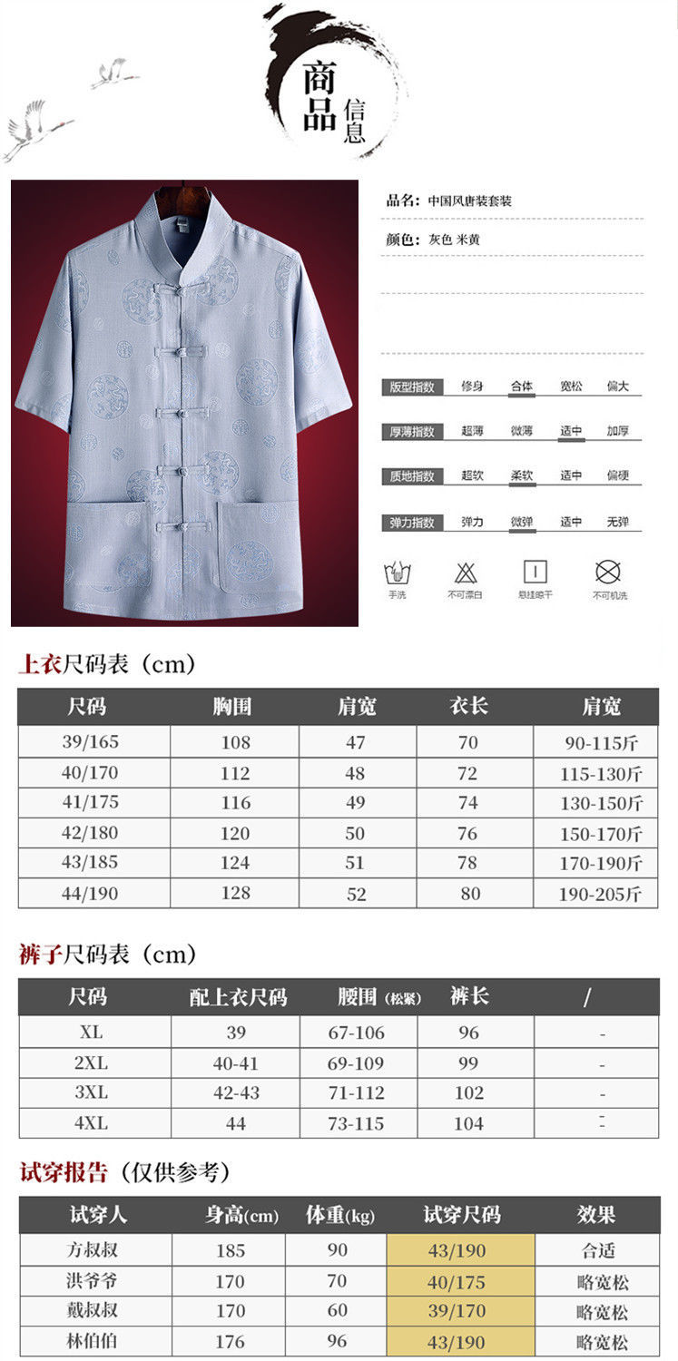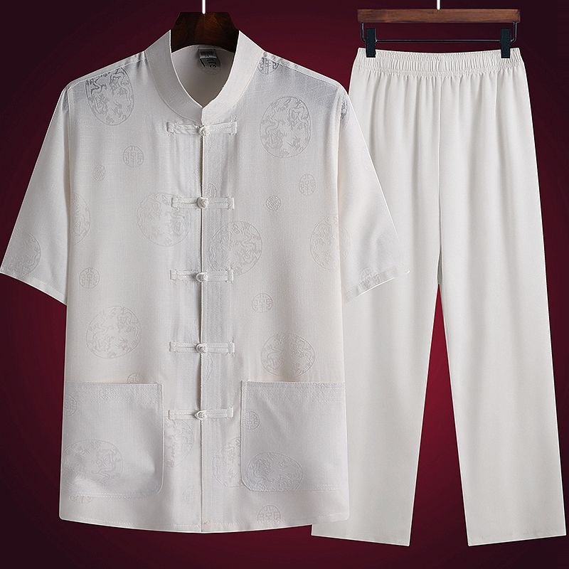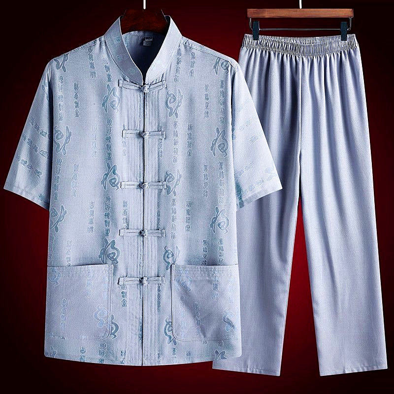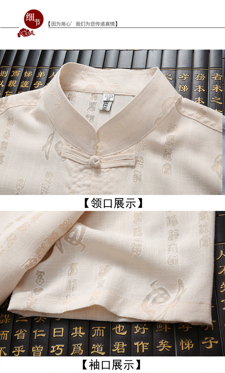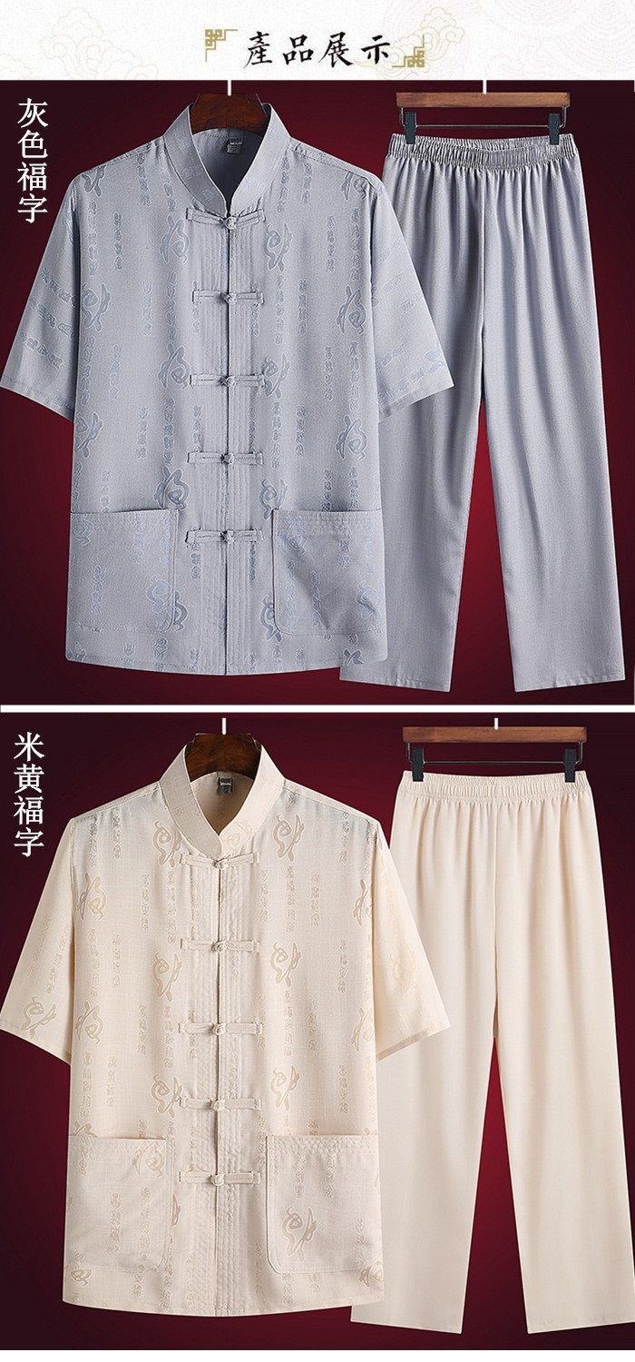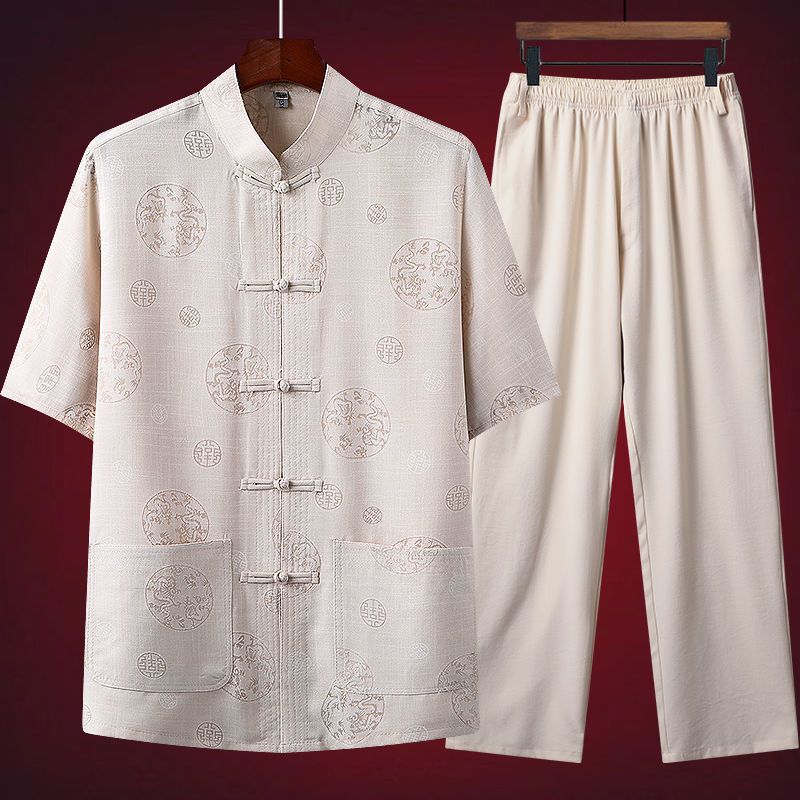 Tang 세트 남자의 반팔 캐주얼 세트 아빠 여름 옷 중년 및 노인 사람들의 Hanfu 중국 스타일 남자의 여름 할아버지 옷스토어 가기