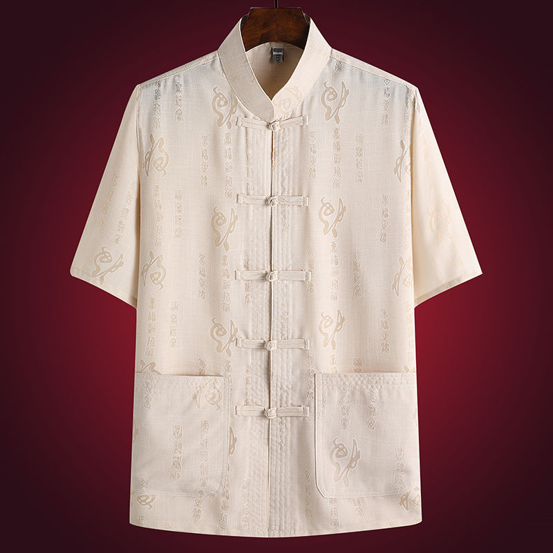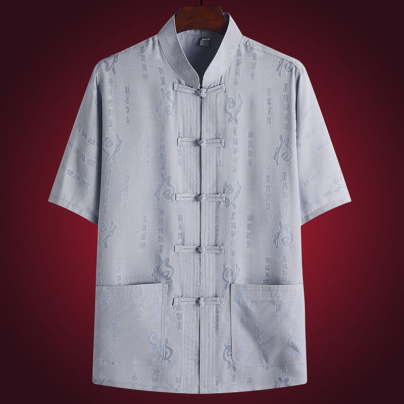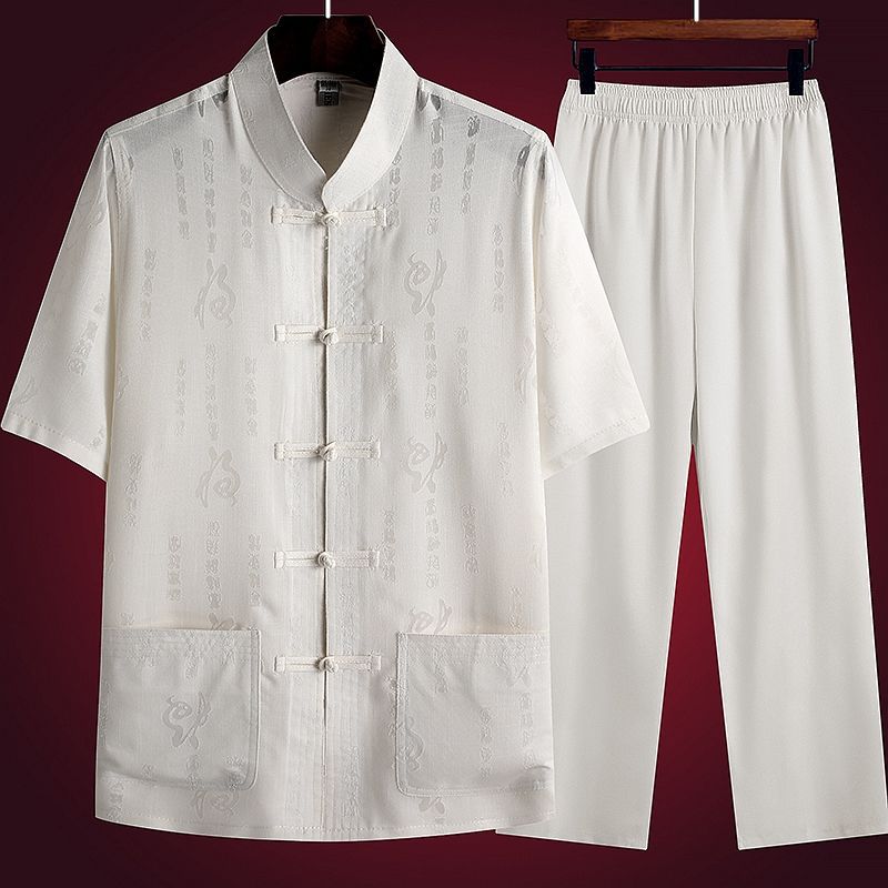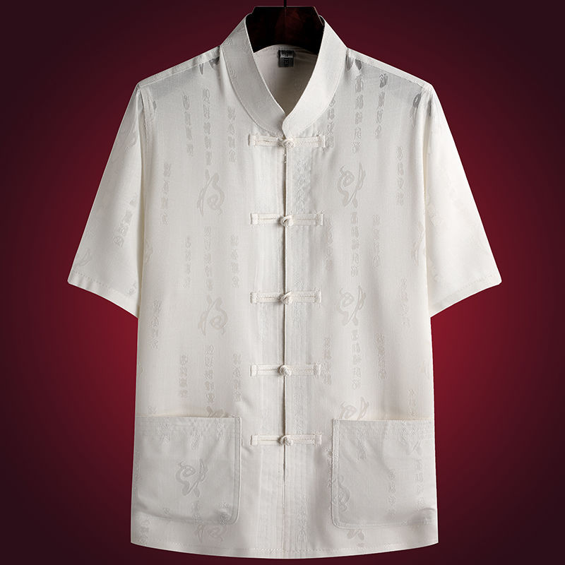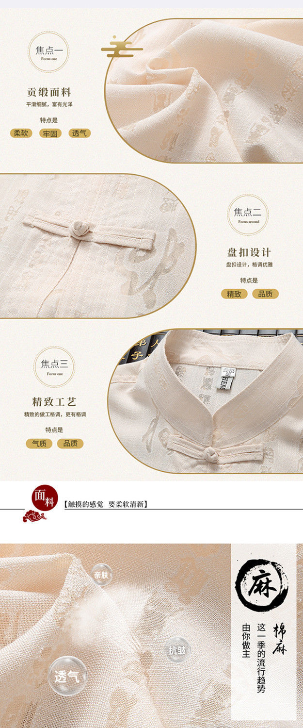 Tang 세트 남자의 반팔 캐주얼 세트 아빠 여름 옷 중년 및 노인 사람들의 Hanfu 중국 스타일 남자의 여름 할아버지 옷
