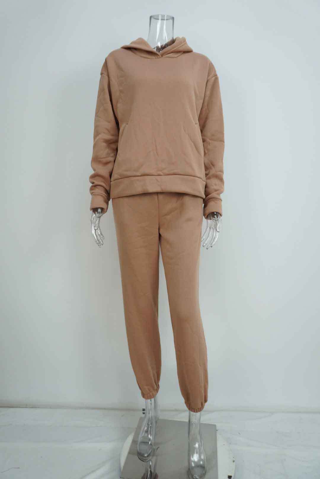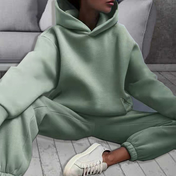 2025 봄 아마존 유럽 및 미국 여성 의류 단색 캐주얼 패션 바지 두꺼운 스포츠 후드티 세트 여성용스토어 가기