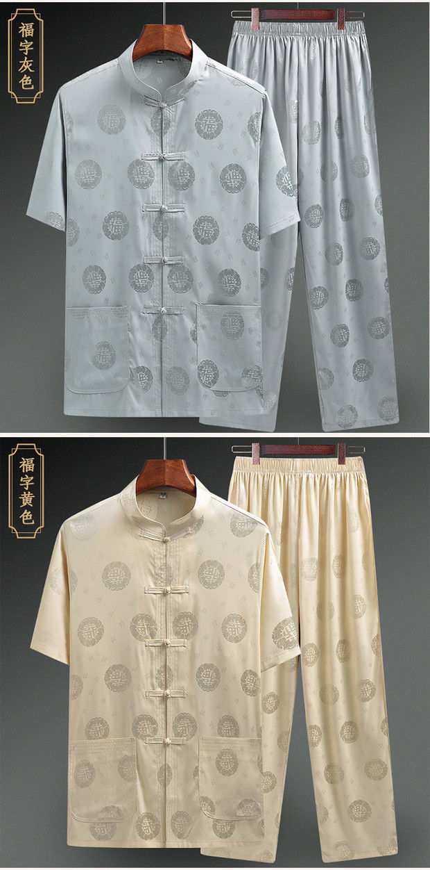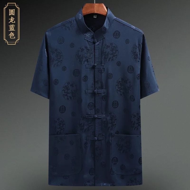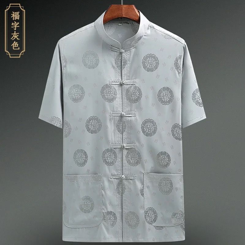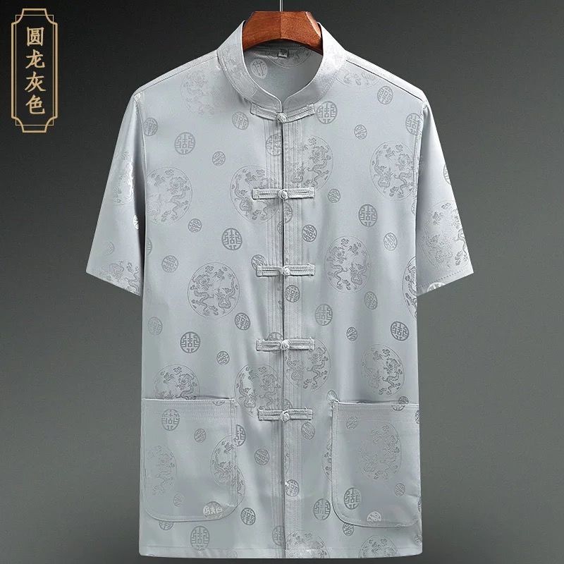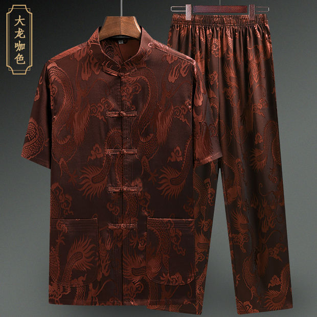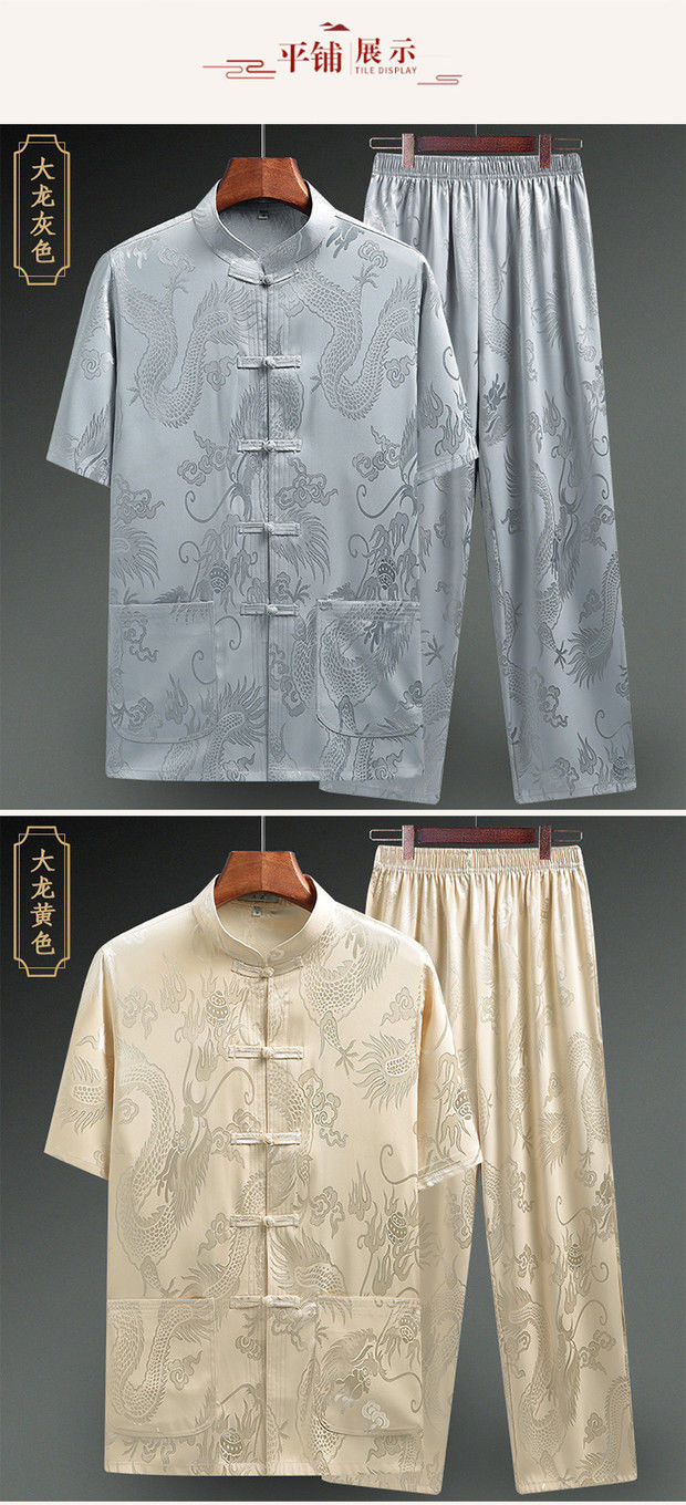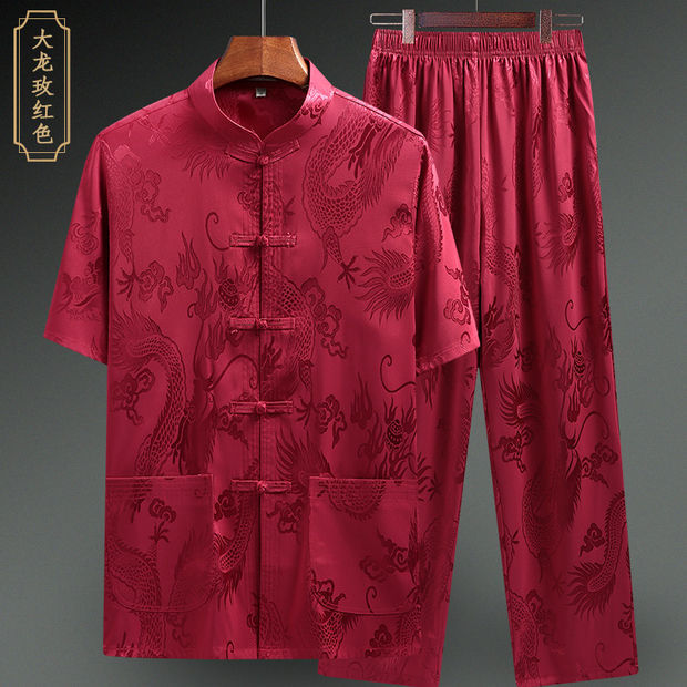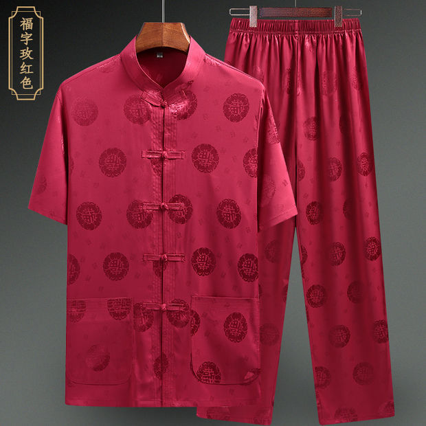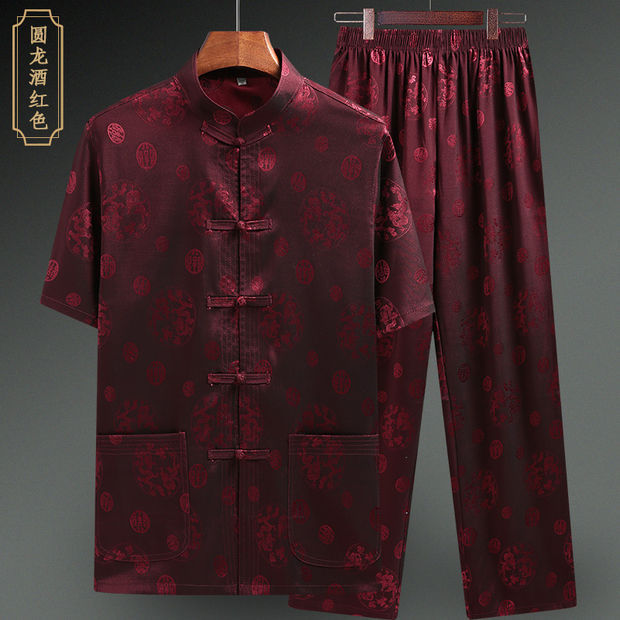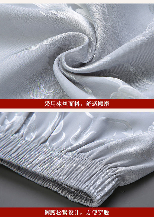Tang 세트 남자의 아이스 실크 반팔 여름 중년 및 노인 아빠 세트 얇은 세트 노인 옷 중국 스타일 할아버지 여름 옷
