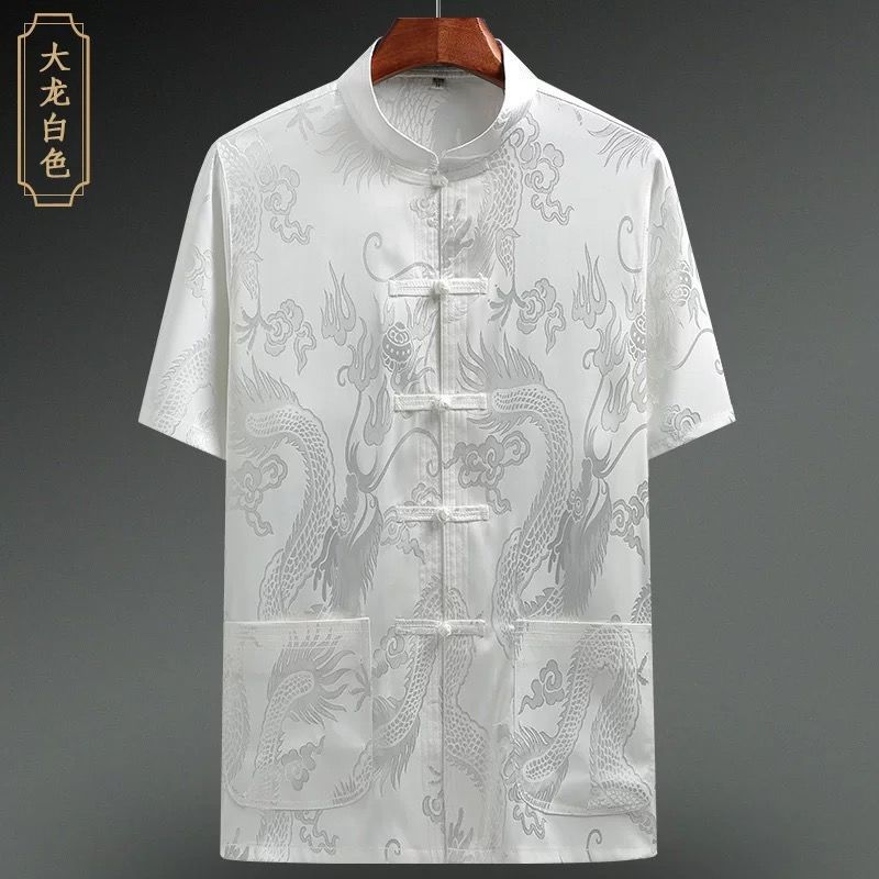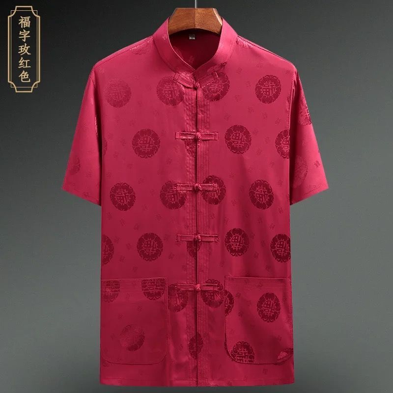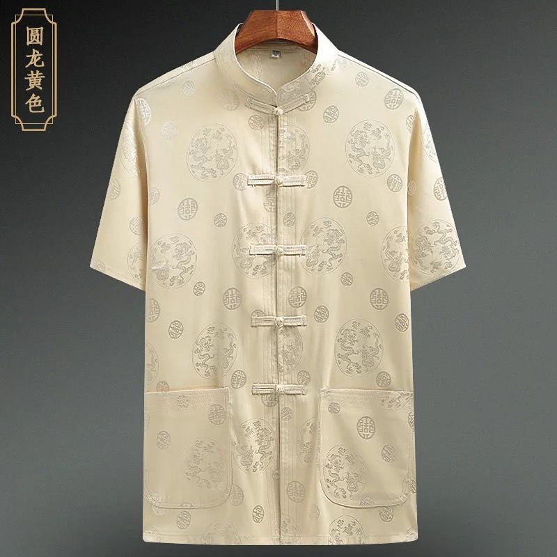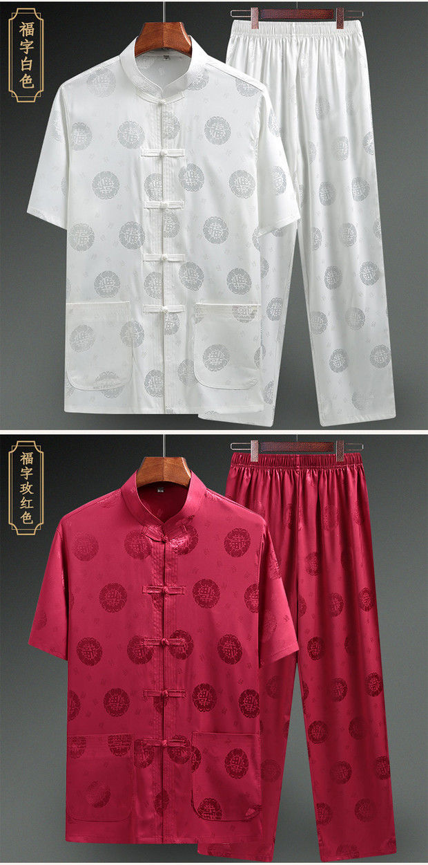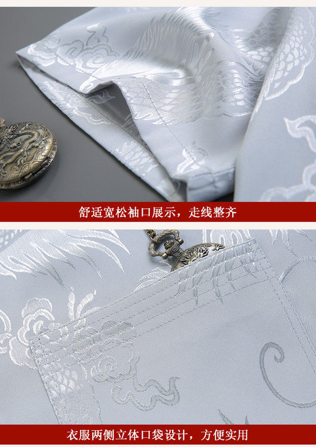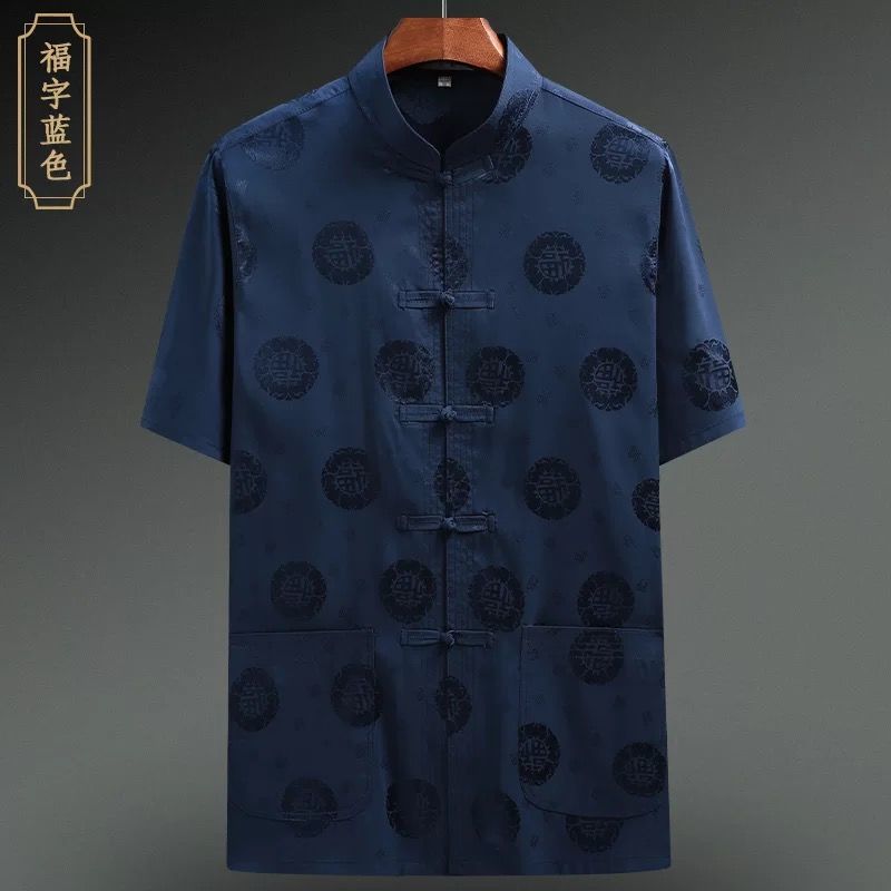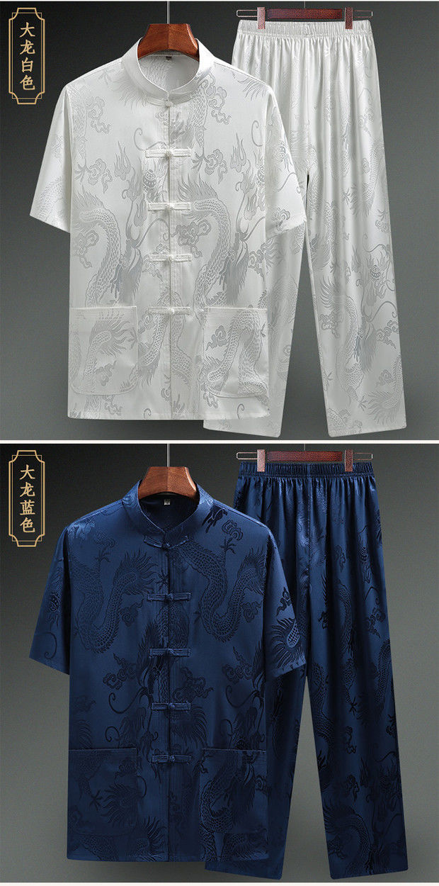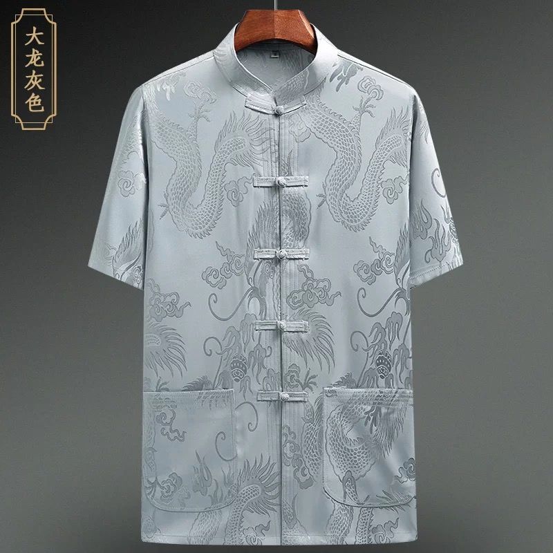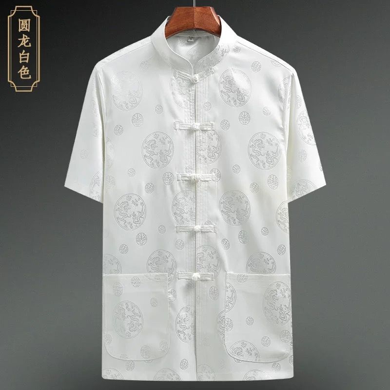 Tang 세트 남자의 아이스 실크 반팔 여름 중년 및 노인 아빠 세트 얇은 세트 노인 옷 중국 스타일 할아버지 여름 옷