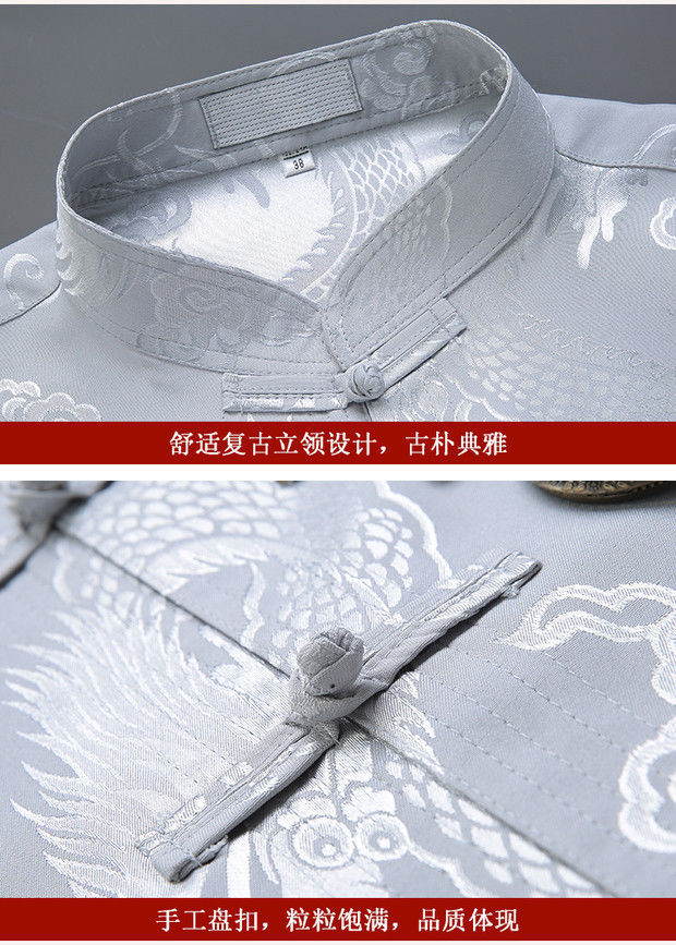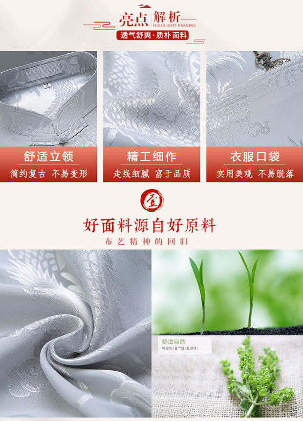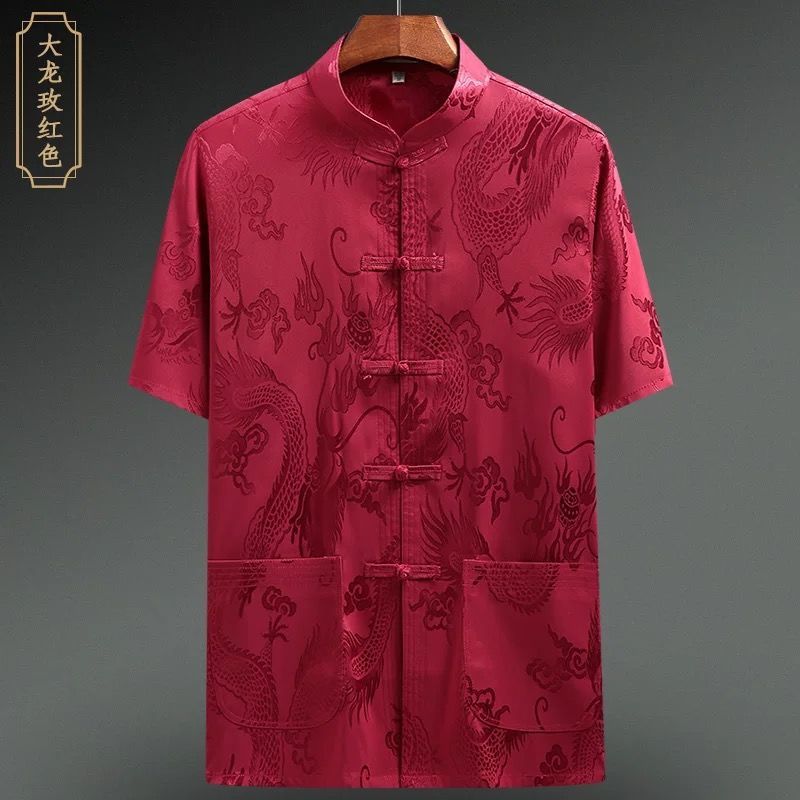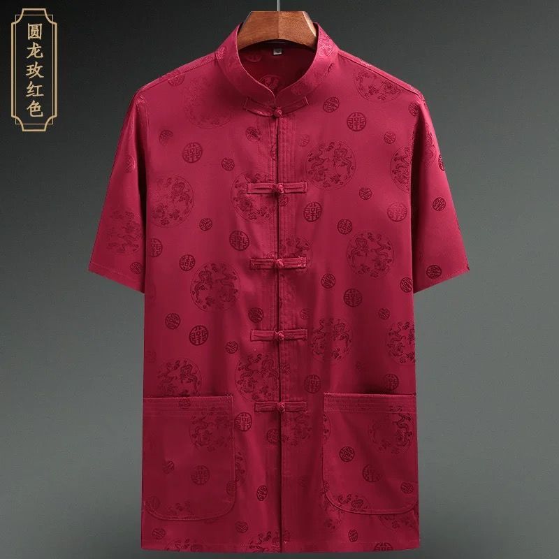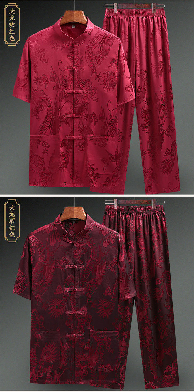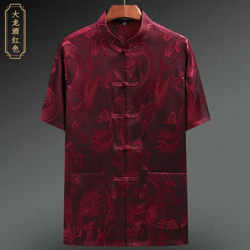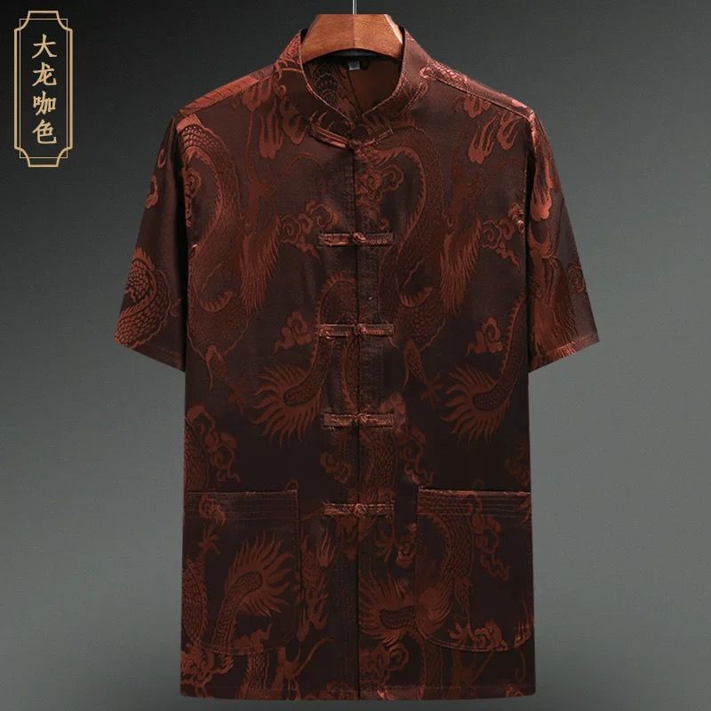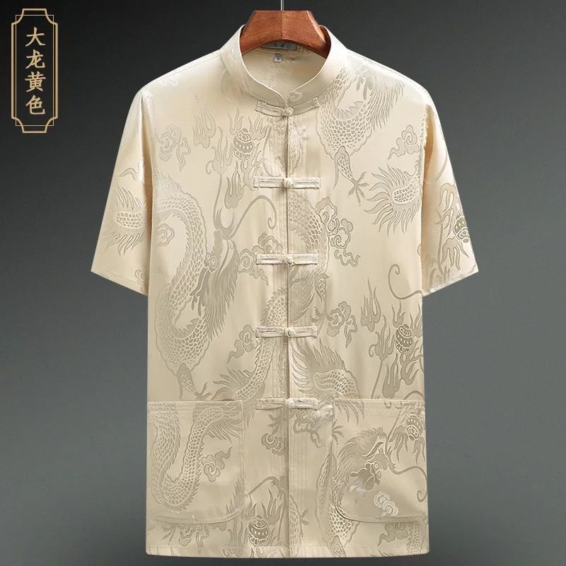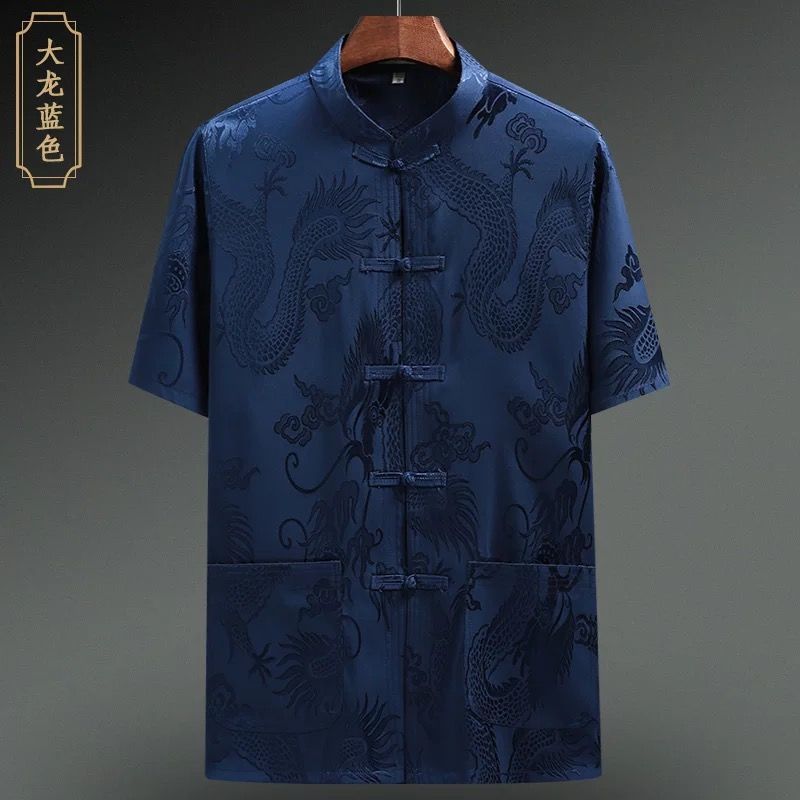 Tang 세트 남자의 아이스 실크 반팔 여름 중년 및 노인 아빠 세트 얇은 세트 노인 옷 중국 스타일 할아버지 여름 옷