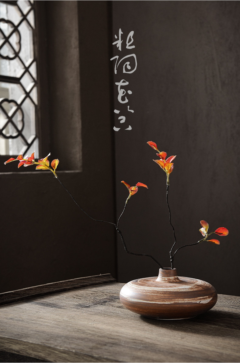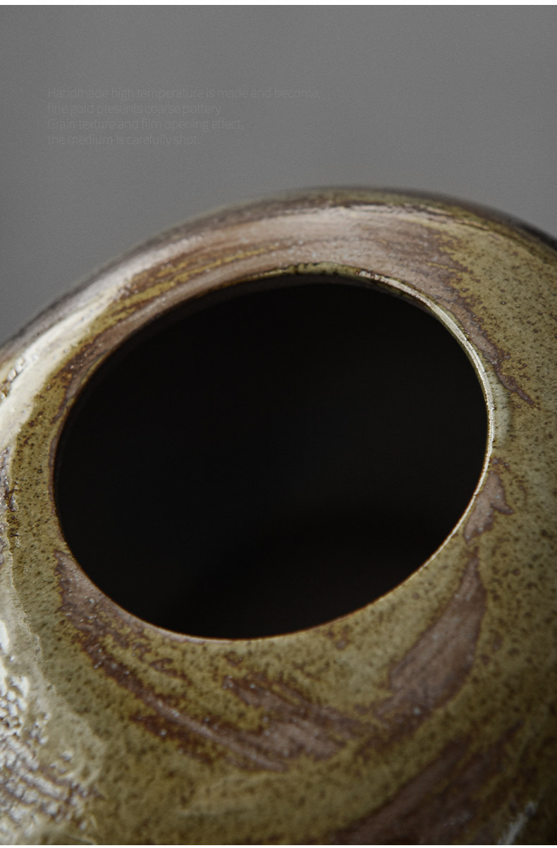 일본식 석기 꽃병 검은 도자기 손으로 그린 복고풍 추상 골동품 골드 유약 꽃 세라믹 선 데스크탑 장식품