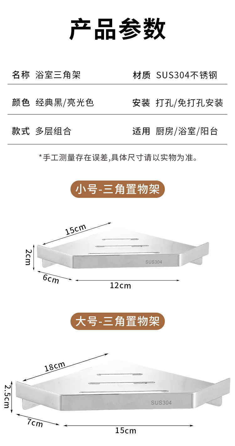 304 스테인레스 스틸 삼각형 랙 화장실 펀치 프리 샤워실 욕실 주방 코너 욕실 랙