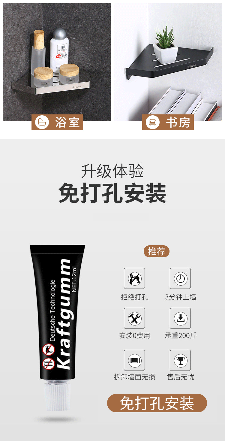 304 스테인레스 스틸 삼각형 랙 화장실 펀치 프리 샤워실 욕실 주방 코너 욕실 랙스토어 가기