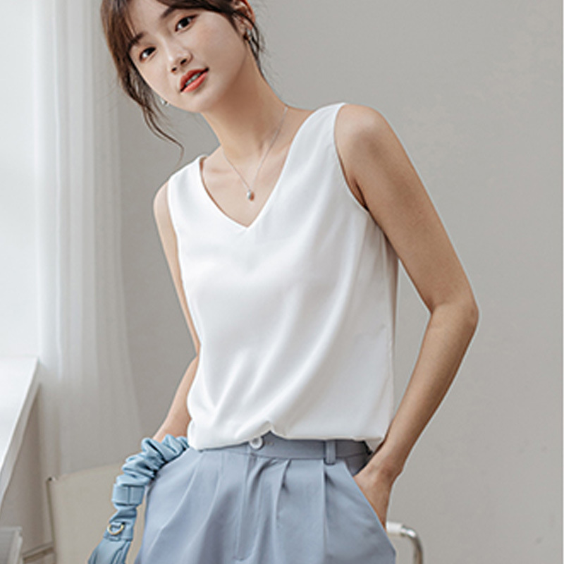 새로운 섹시한 V-넥 민소매 탑 여성의 슬림 유행 탑 소프트 느슨한 멀티 컬러 옵션 기본 셔츠 도매스토어 가기
