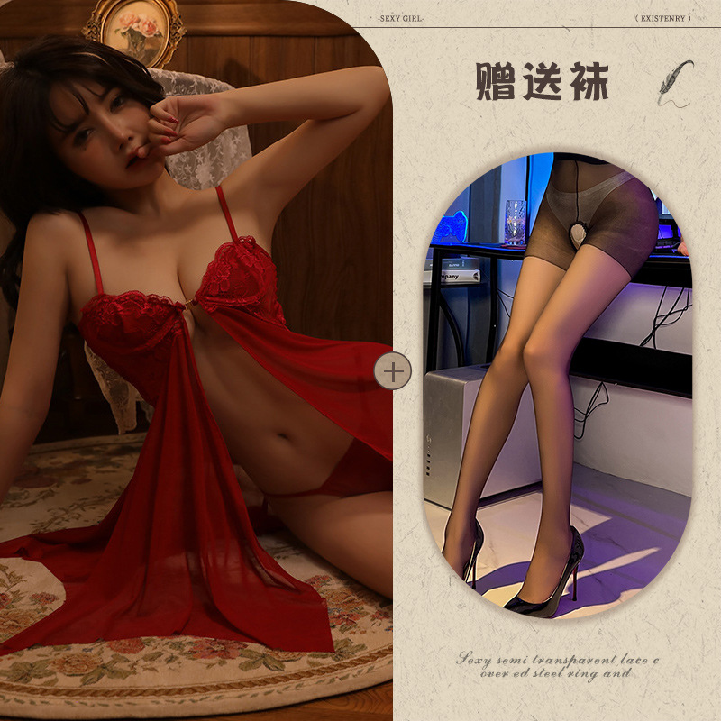밤 Tingxiang 섹시 란제리 앞 버클 메쉬 관점 유혹 잠옷 핫 스플릿 슬링 잠옷