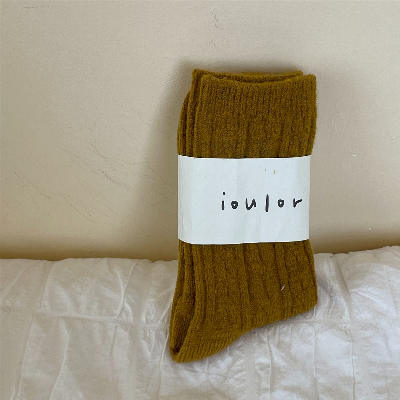 IOULOR加厚点子羊毛袜秋冬袜子纯色日系中筒堆堆袜羊绒月子袜批发