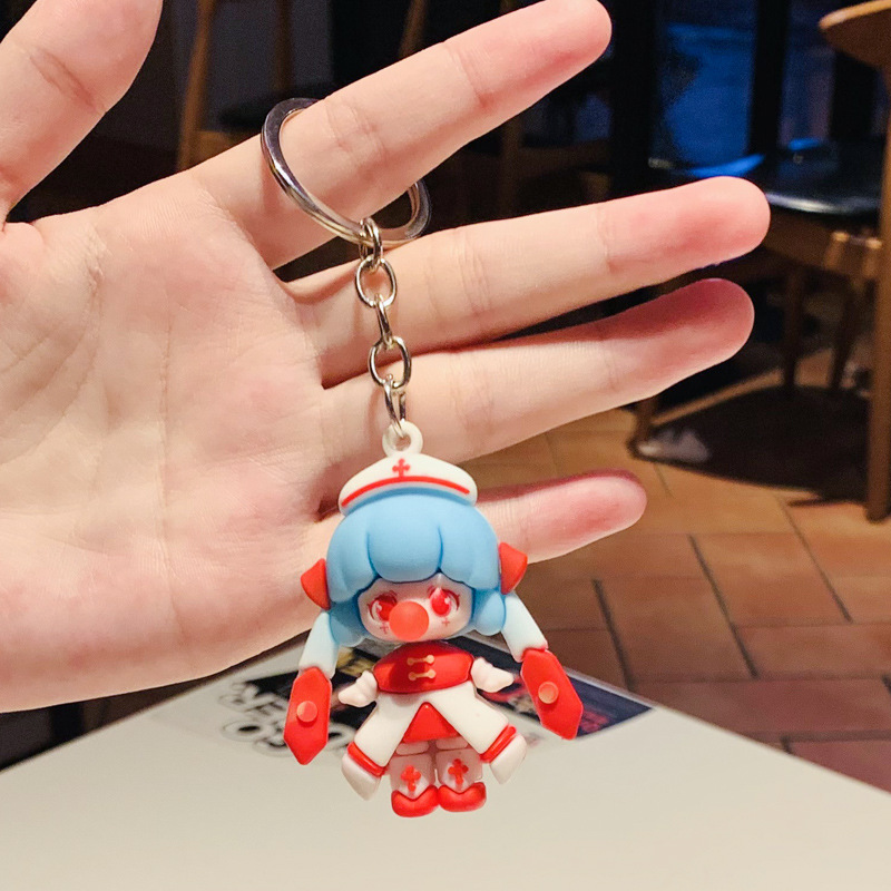 도매 pvc 만화 펜던트 귀여운 여성 가방 자동차 펜던트 인형 실속 공급 드롭 접착제 커플 키 체인스토어 가기
