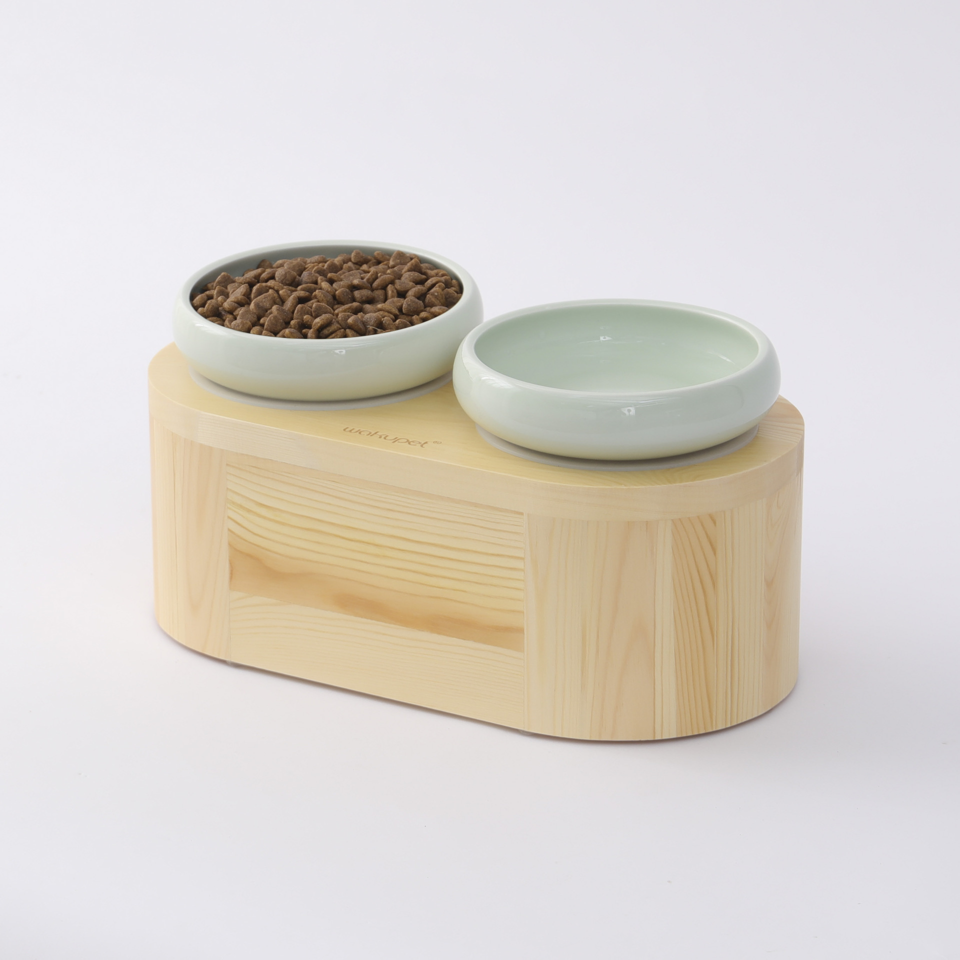 브랜드 직접 두근두근 고양이 음식 분지 더블 볼 유리 그릇 고양이 그릇 기울기 애완 동물 고양이 단단한 나무 고양이 그릇 테이블스토어 가기