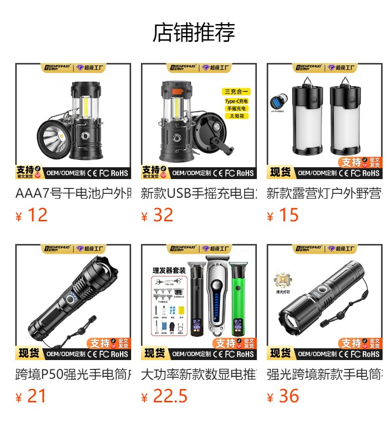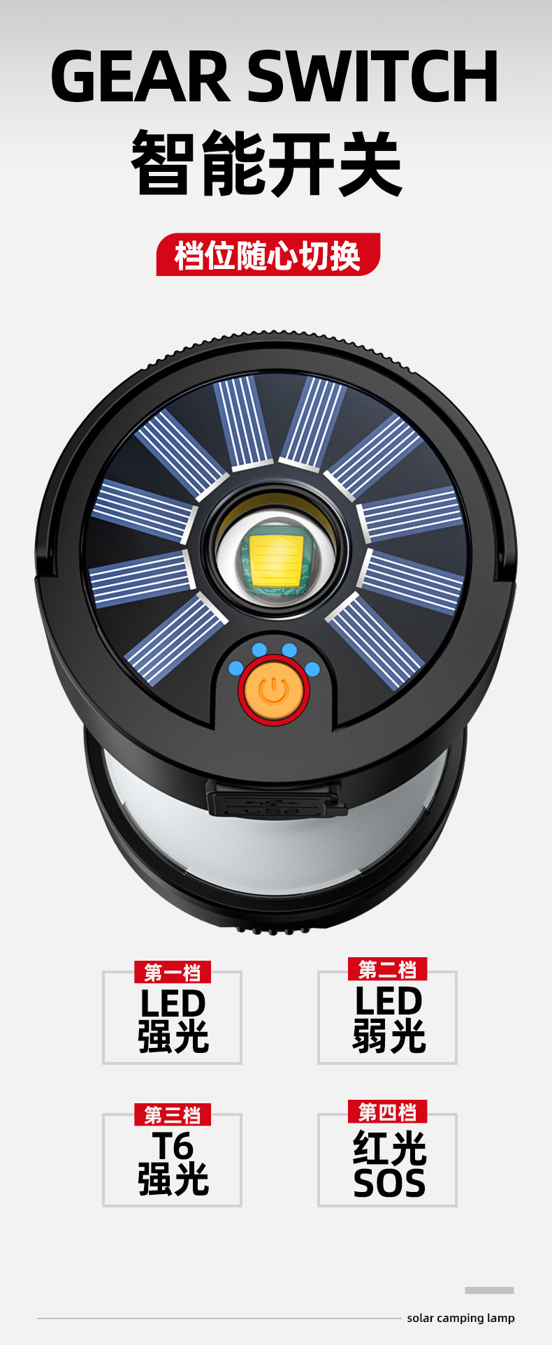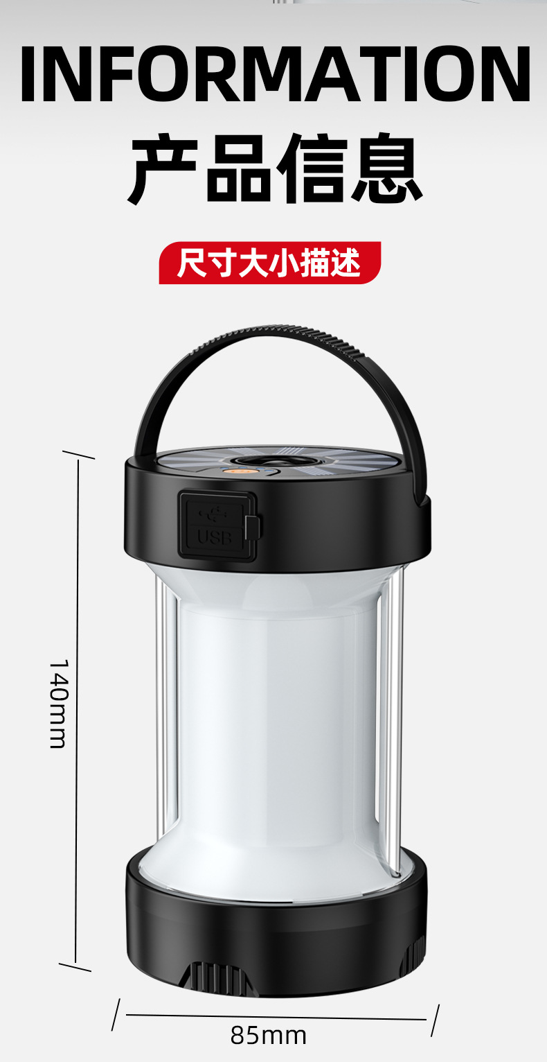 射距:露营功能约15-25㎡,手电筒功能约50m