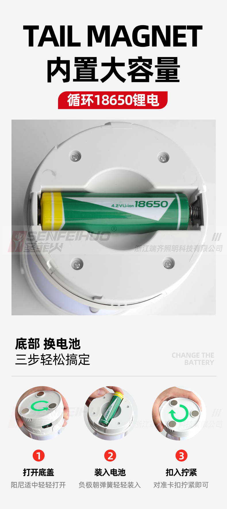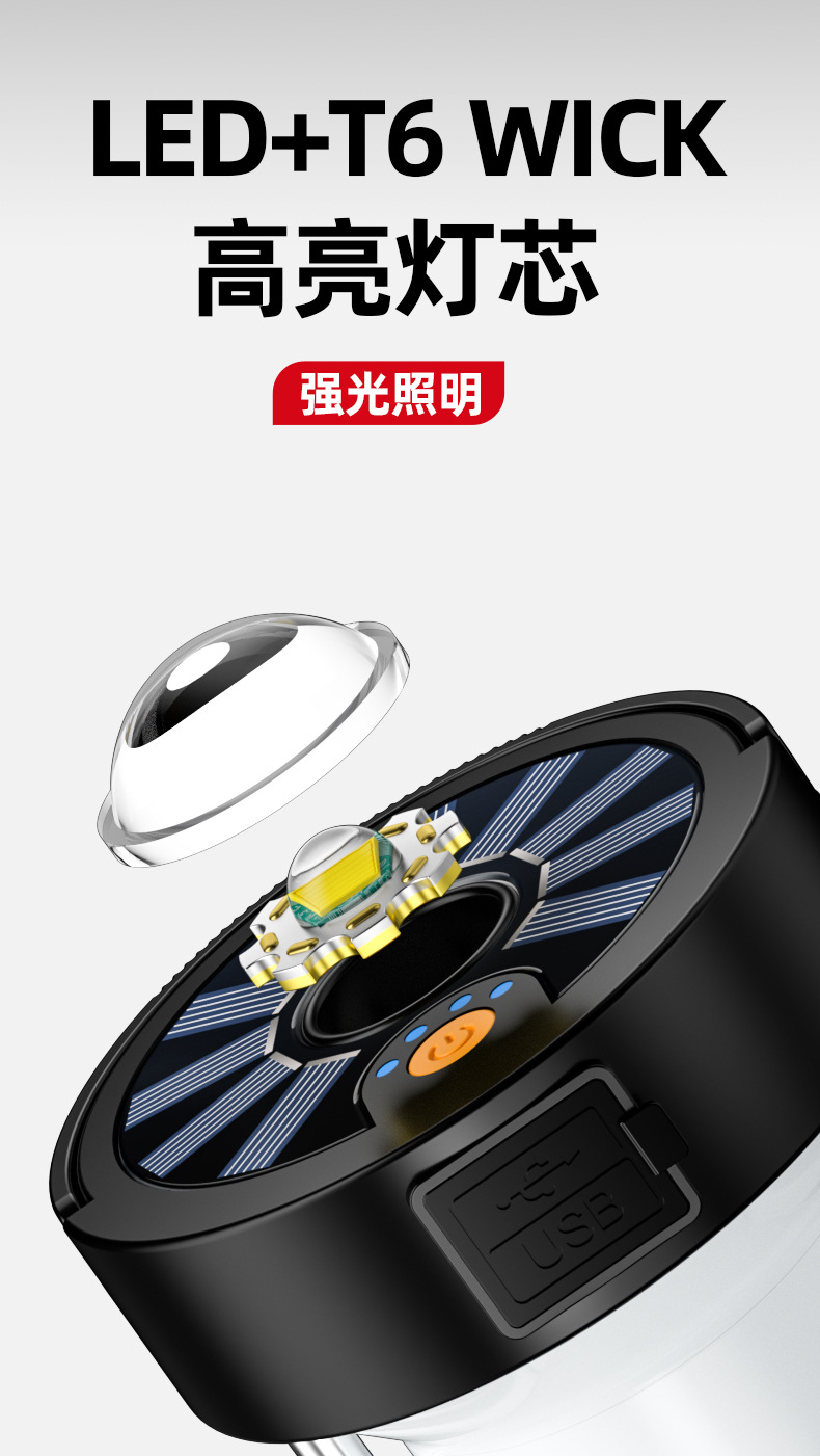 功能:手提灯、野营灯、应急灯,磁铁吸附工作灯