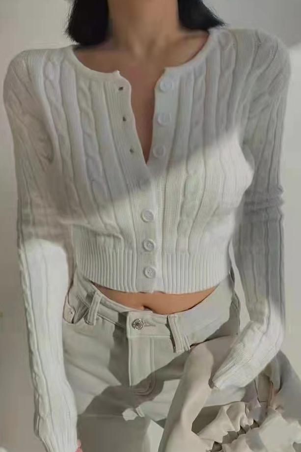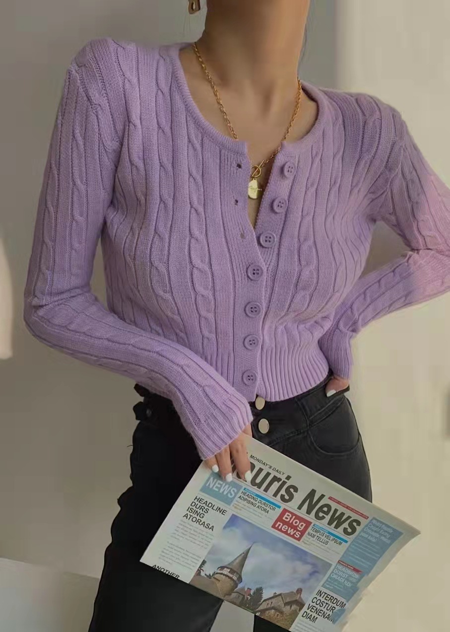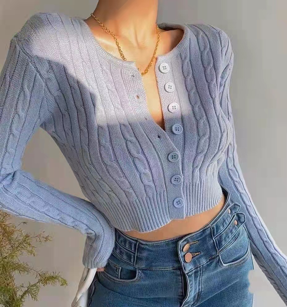 2024 여성 의류 레트로 트위스트 슬림 v 넥 니트 카디건 여성 짧은 긴팔 탑 스웨터 자켓스토어 가기