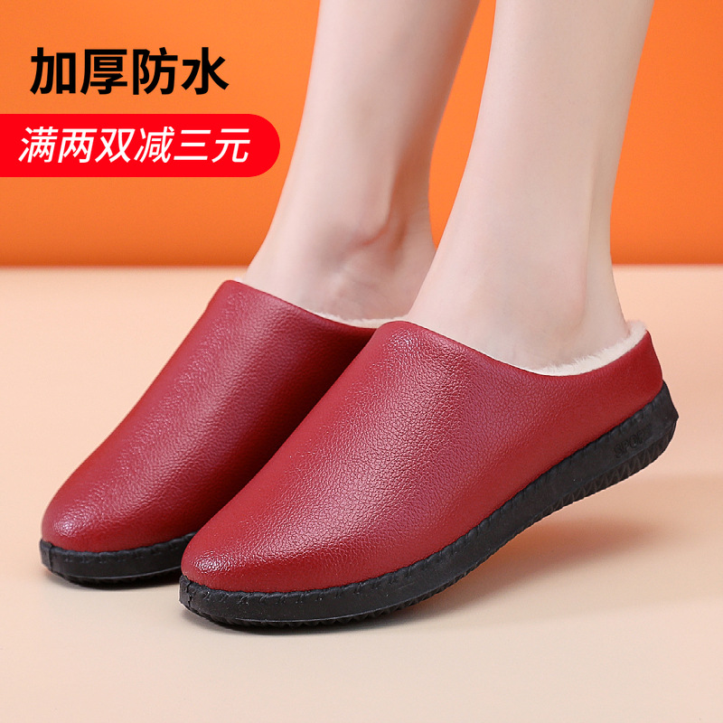 신면 신발 여성용 겨울 면화 부츠 중년 및 노인 방수 두꺼운 미끄럼 방지 부드러운 바닥 어머니 신발 편안한 가죽 면화 슬리퍼스토어 가기