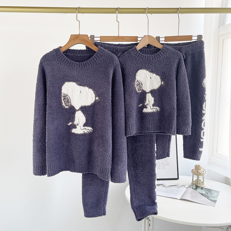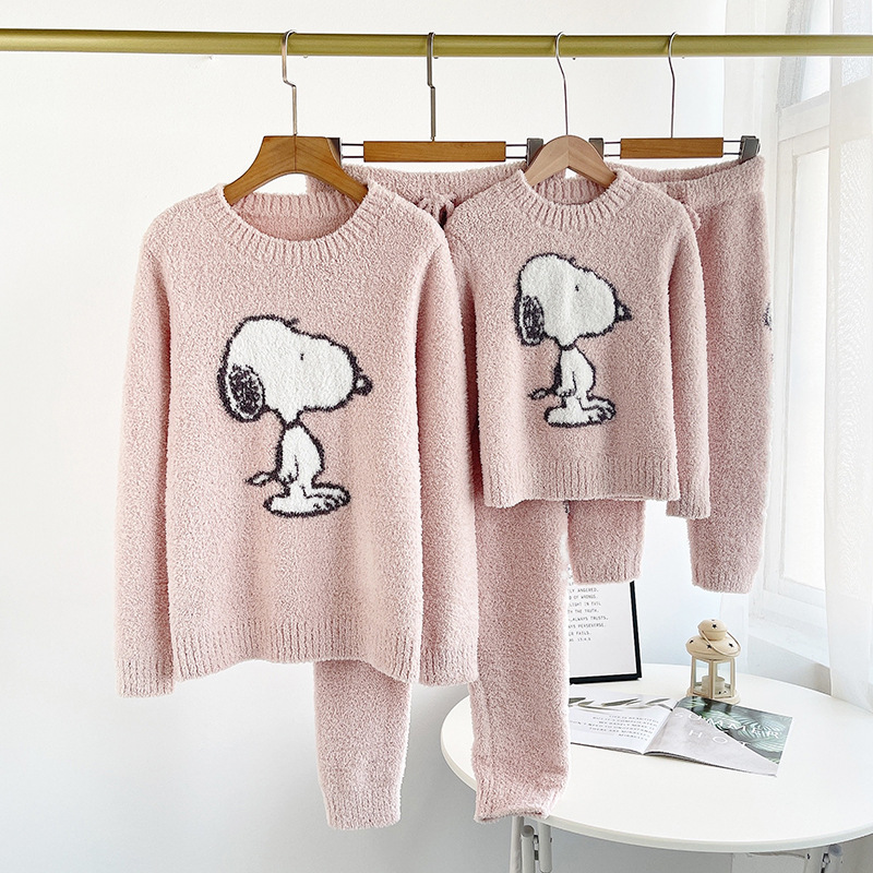 여자의 가을과 겨울 부드러운 반쪽 벨벳 큰 개 패턴 편지 커플 부모-자식 잠옷 바지 가정 옷 세트스토어 가기