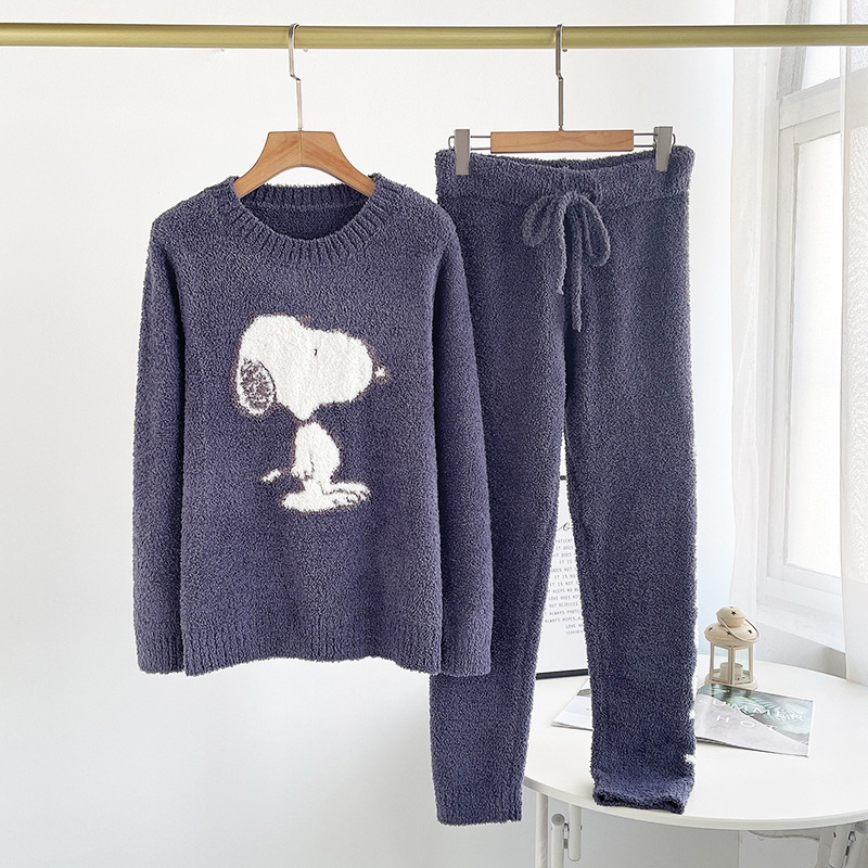 여자의 가을과 겨울 부드러운 반쪽 벨벳 큰 개 패턴 편지 커플 부모-자식 잠옷 바지 가정 옷 세트