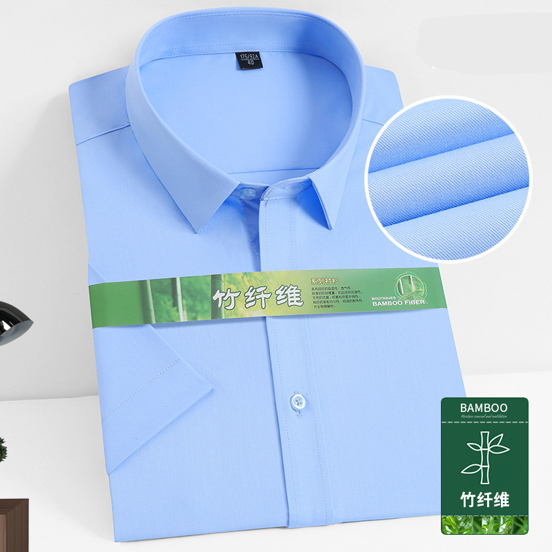 竹纤维男士衬衫男款长袖冰凉白衬衣休闲透气免烫男衬衫夏现货批发
