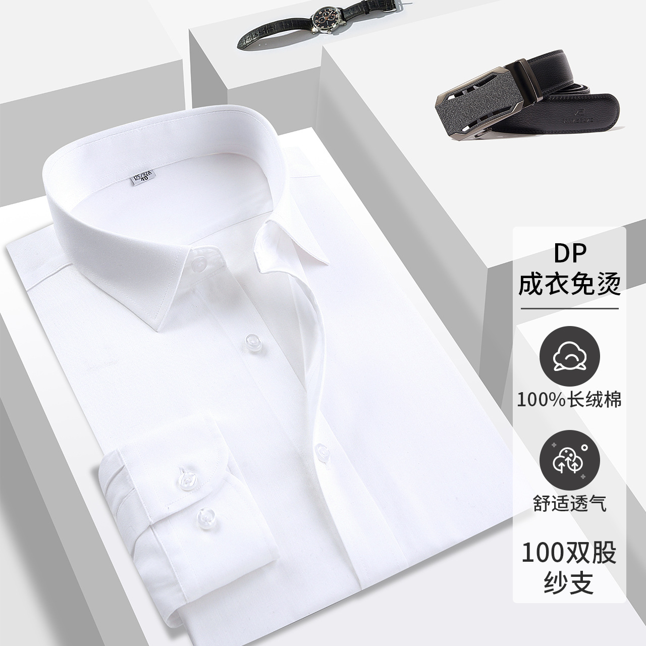 高级白色男士衬衫男款衬衣100%全棉商务装成衣免烫白衬衣140S三股