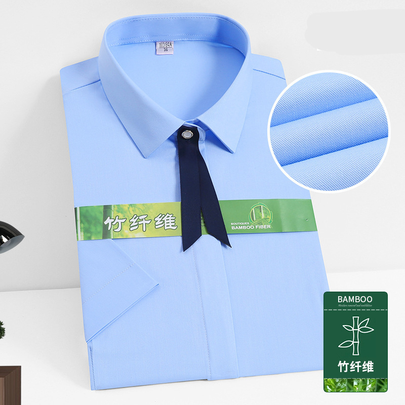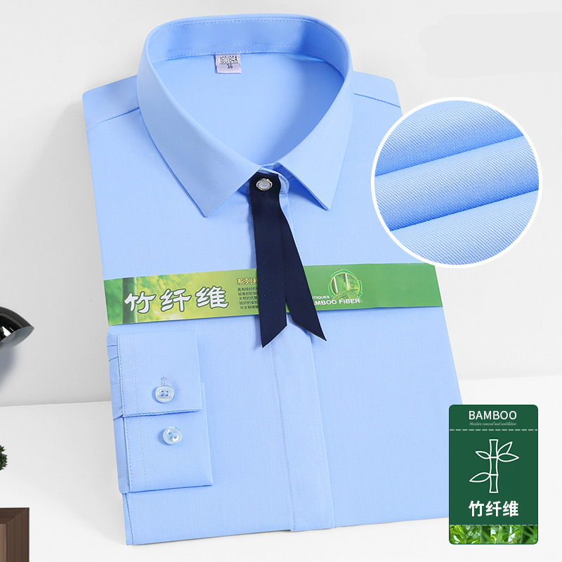 新款女士衬衫男长袖浅蓝色衬衫商务职业装银行工作服纯棉免烫衬衣