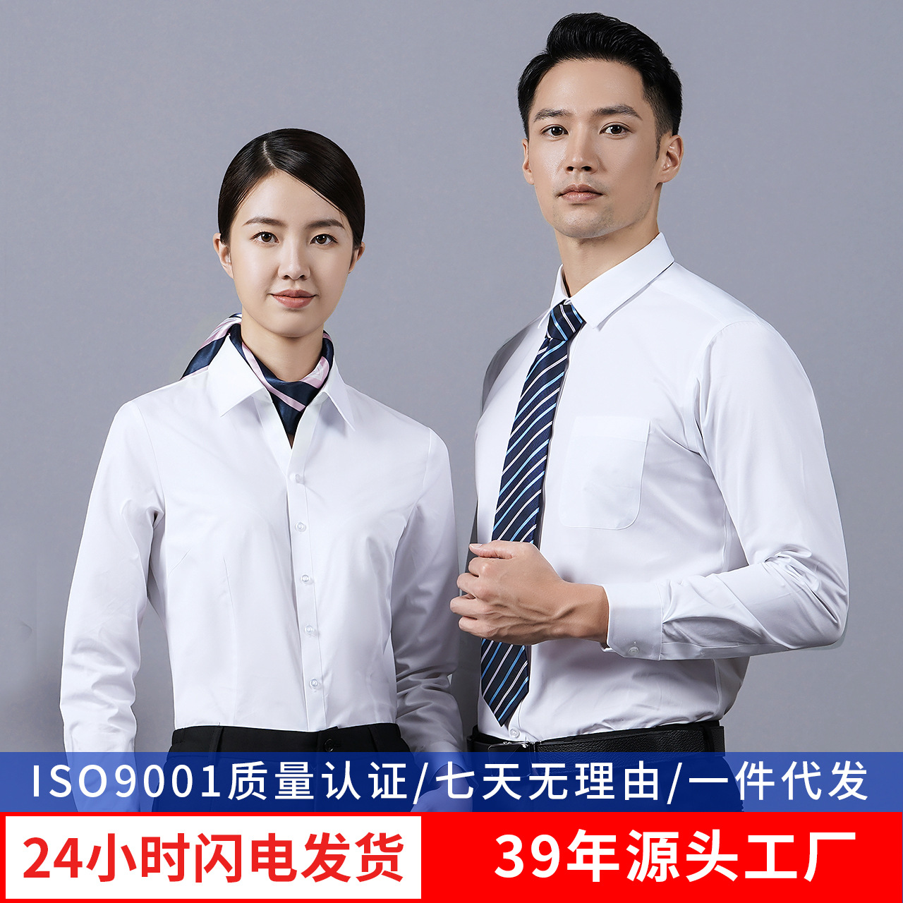 白衬衫男长袖修身抗皱商务工作服秋季销售员职业正装男女衬衣厂家