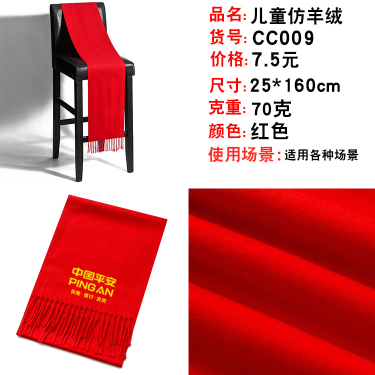 중국 레드 페스티벌 스카프 맞춤 자수 파티 개회식 레드 스카프 도매 인쇄 로고스토어 가기
